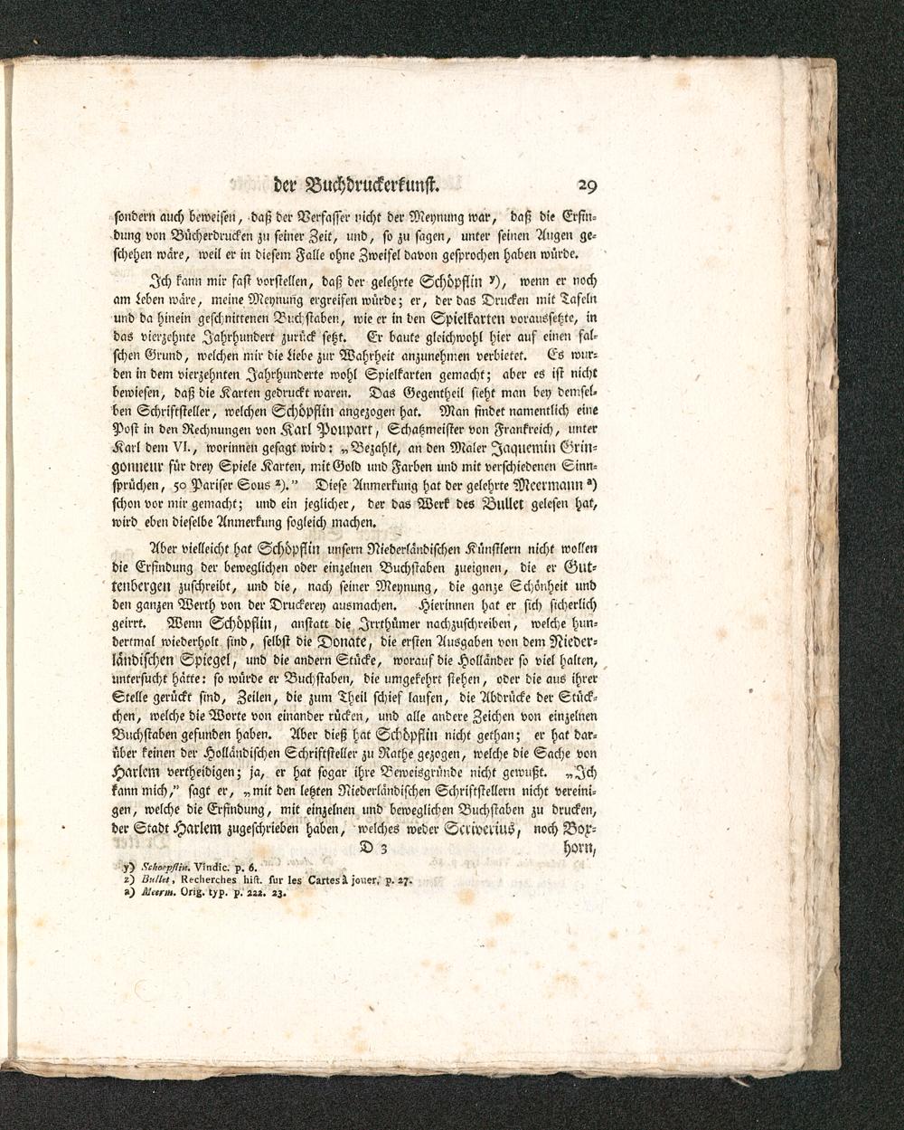 Über die Geschichte der Erfindung der Buchdruckerkunst : bey Gelegenheit einiger neuern darüber geäusserten besondern Meynungen : nebst Anzeige des Inhaltes seiner Geschichte der Erfindung der Buchdruckerkunst / Johann Gottlob Immanuel Breitkopf
