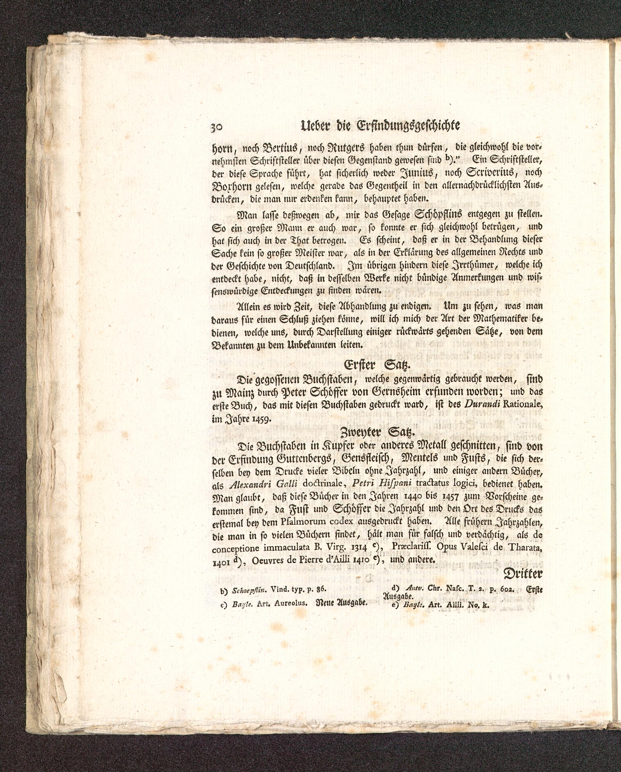 Über die Geschichte der Erfindung der Buchdruckerkunst : bey Gelegenheit einiger neuern darüber geäusserten besondern Meynungen : nebst Anzeige des Inhaltes seiner Geschichte der Erfindung der Buchdruckerkunst / Johann Gottlob Immanuel Breitkopf
