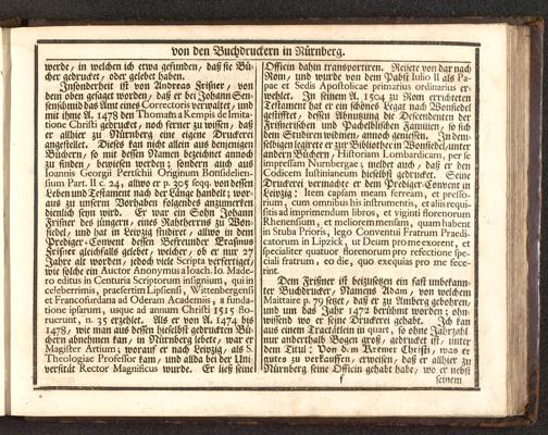 Die Wol-eingerichtete Buchdruckerey : mit hundert und ein und zwanzig Teutsch- Lateinisch- Griechisch- und Hebräischen Schrifften, vieler fremden Sprachen Alphabeten, musicalischen Noten, Calender-Zeichen, und Medicinischen Characteren, Jngleichen allen üblichen Formaten bestellet, und mit accurater Abbildung der Erfinder der löblichen Kunst, nebst einer summarischen Nachricht von den Buchdruckern in Nürnberg ausgezieret ; Am Ende sind etlichen kurz-gefasste Anmerckungen von der Hebräischen Sprach angefüget / [Joh. Heinrich Gottfried Ernesti]