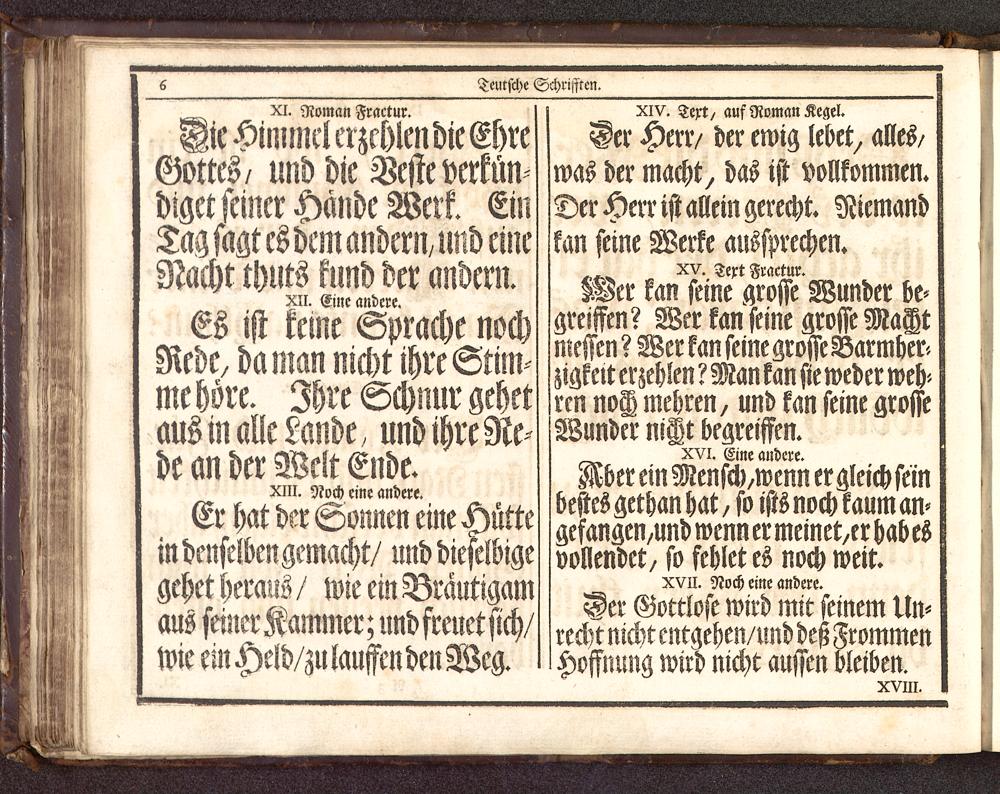 Die Wol-eingerichtete Buchdruckerey : mit hundert und ein und zwanzig Teutsch- Lateinisch- Griechisch- und Hebräischen Schrifften, vieler fremden Sprachen Alphabeten, musicalischen Noten, Calender-Zeichen, und Medicinischen Characteren, Jngleichen allen üblichen Formaten bestellet, und mit accurater Abbildung der Erfinder der löblichen Kunst, nebst einer summarischen Nachricht von den Buchdruckern in Nürnberg ausgezieret ; Am Ende sind etlichen kurz-gefasste Anmerckungen von der Hebräischen Sprach angefüget / [Joh. Heinrich Gottfried Ernesti]