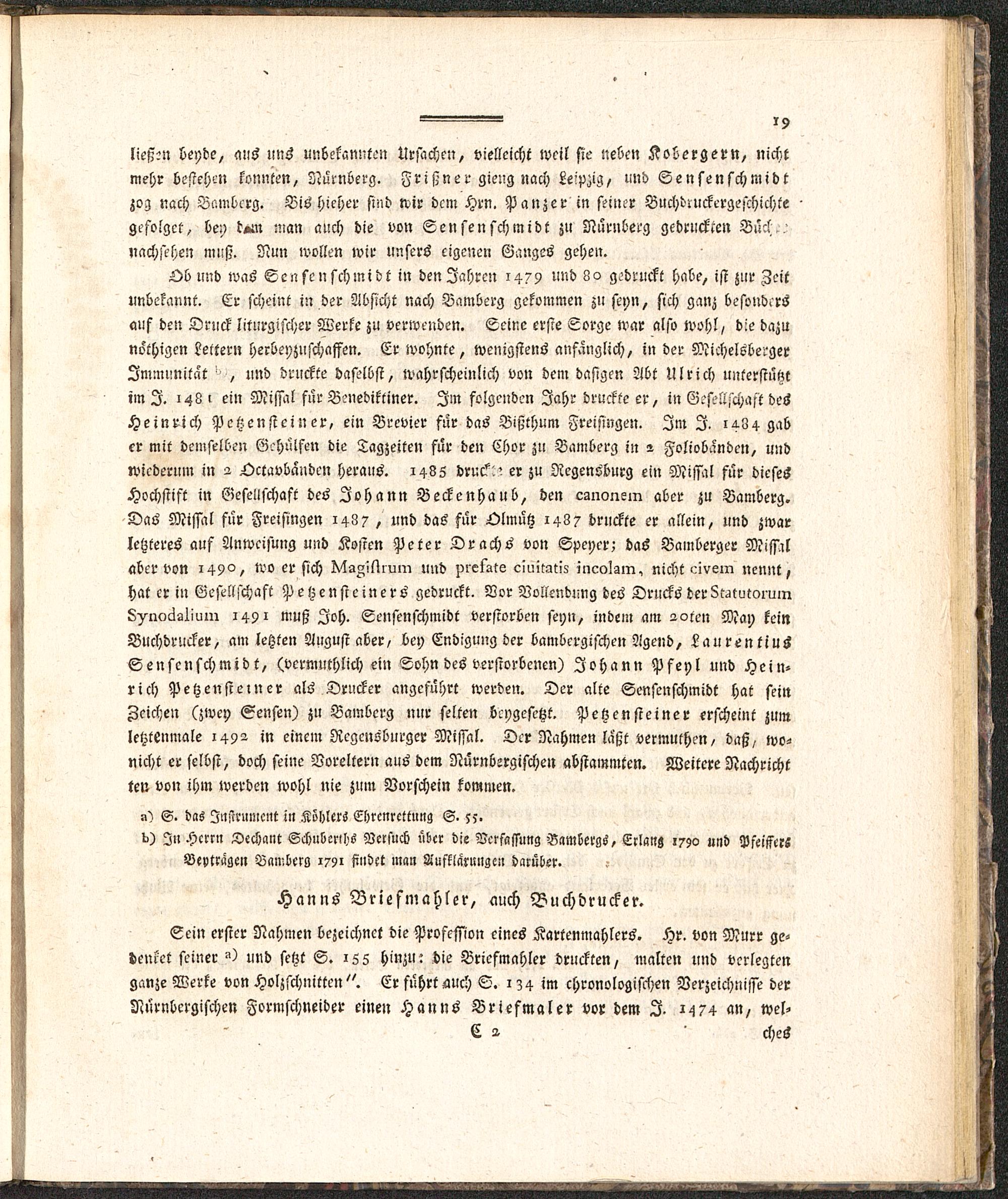 Aelteste Buchdruckergeschichte von Bamberg : wo diese Kunst neben Mainz, von allen übrigen Städten Deutschlands zuerst getrieben worden ; aus der Dunkelheit hervorgezogen und bis 1534 fortgeführt, auch mit ein Paar Abhandlungen versehen / von P. Placidus Sprenger, Benediktiner und Bibliothekar der Abtey Banz