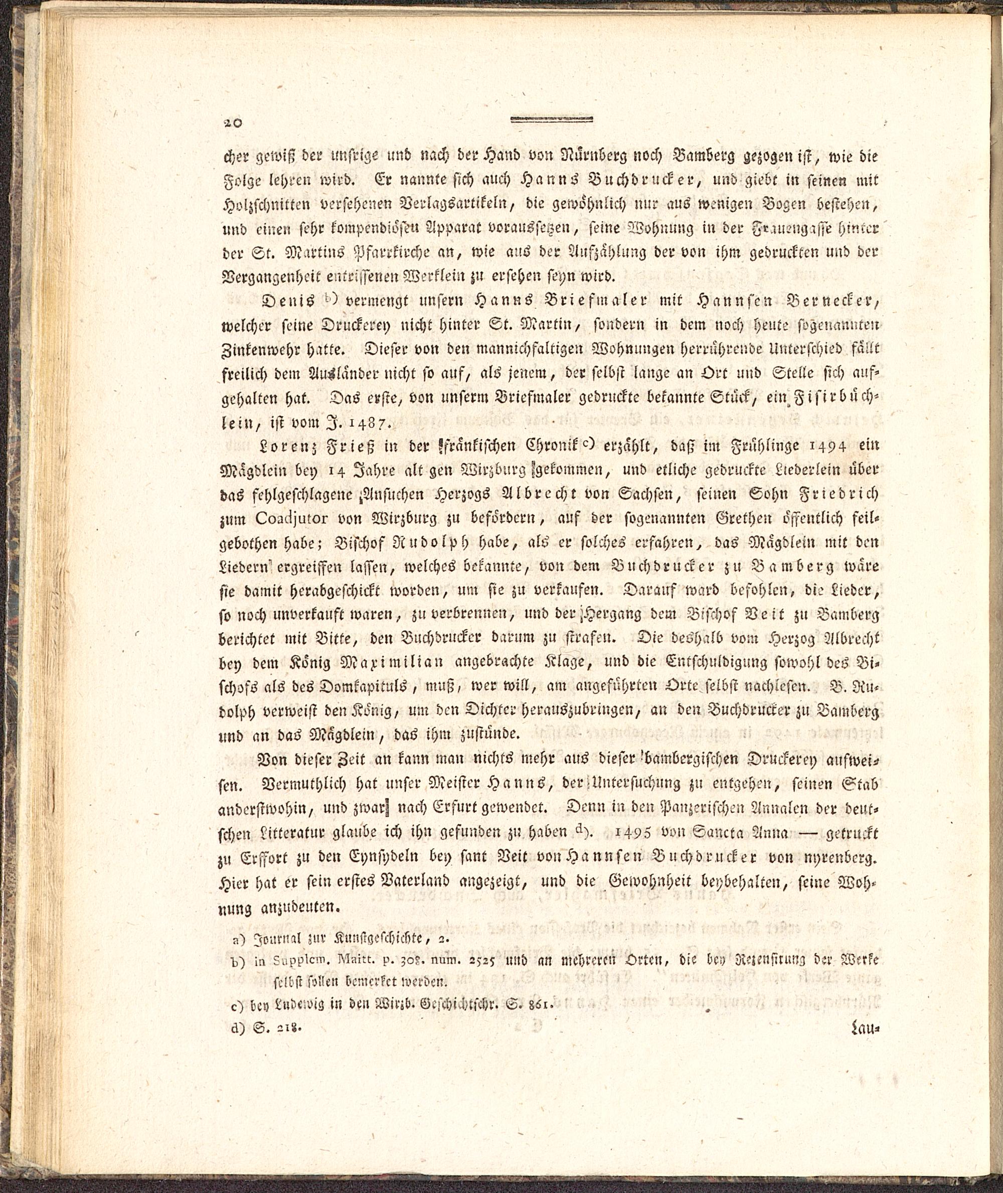 Aelteste Buchdruckergeschichte von Bamberg : wo diese Kunst neben Mainz, von allen übrigen Städten Deutschlands zuerst getrieben worden ; aus der Dunkelheit hervorgezogen und bis 1534 fortgeführt, auch mit ein Paar Abhandlungen versehen / von P. Placidus Sprenger, Benediktiner und Bibliothekar der Abtey Banz