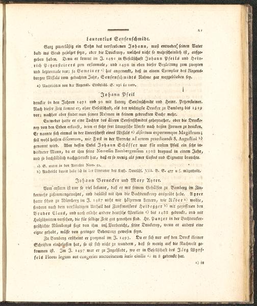Aelteste Buchdruckergeschichte von Bamberg : wo diese Kunst neben Mainz, von allen übrigen Städten Deutschlands zuerst getrieben worden ; aus der Dunkelheit hervorgezogen und bis 1534 fortgeführt, auch mit ein Paar Abhandlungen versehen / von P. Placidus Sprenger, Benediktiner und Bibliothekar der Abtey Banz