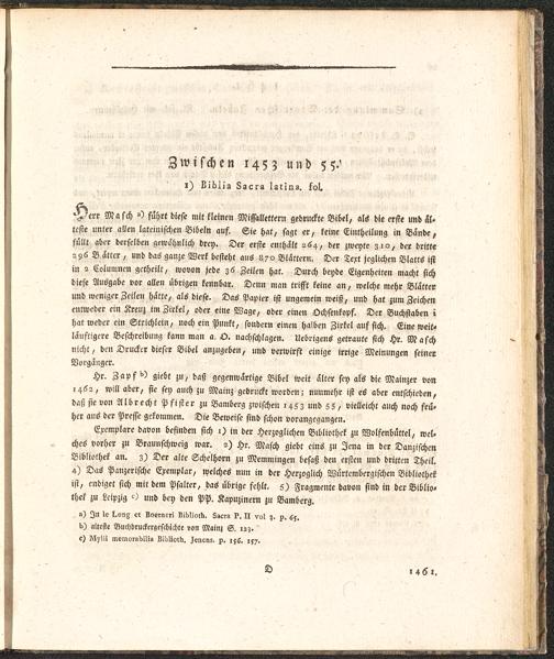 Aelteste Buchdruckergeschichte von Bamberg : wo diese Kunst neben Mainz, von allen übrigen Städten Deutschlands zuerst getrieben worden ; aus der Dunkelheit hervorgezogen und bis 1534 fortgeführt, auch mit ein Paar Abhandlungen versehen / von P. Placidus Sprenger, Benediktiner und Bibliothekar der Abtey Banz