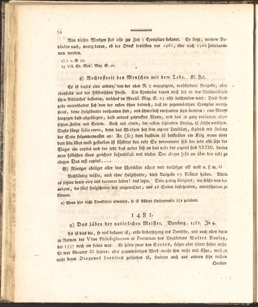 Aelteste Buchdruckergeschichte von Bamberg : wo diese Kunst neben Mainz, von allen übrigen Städten Deutschlands zuerst getrieben worden ; aus der Dunkelheit hervorgezogen und bis 1534 fortgeführt, auch mit ein Paar Abhandlungen versehen / von P. Placidus Sprenger, Benediktiner und Bibliothekar der Abtey Banz