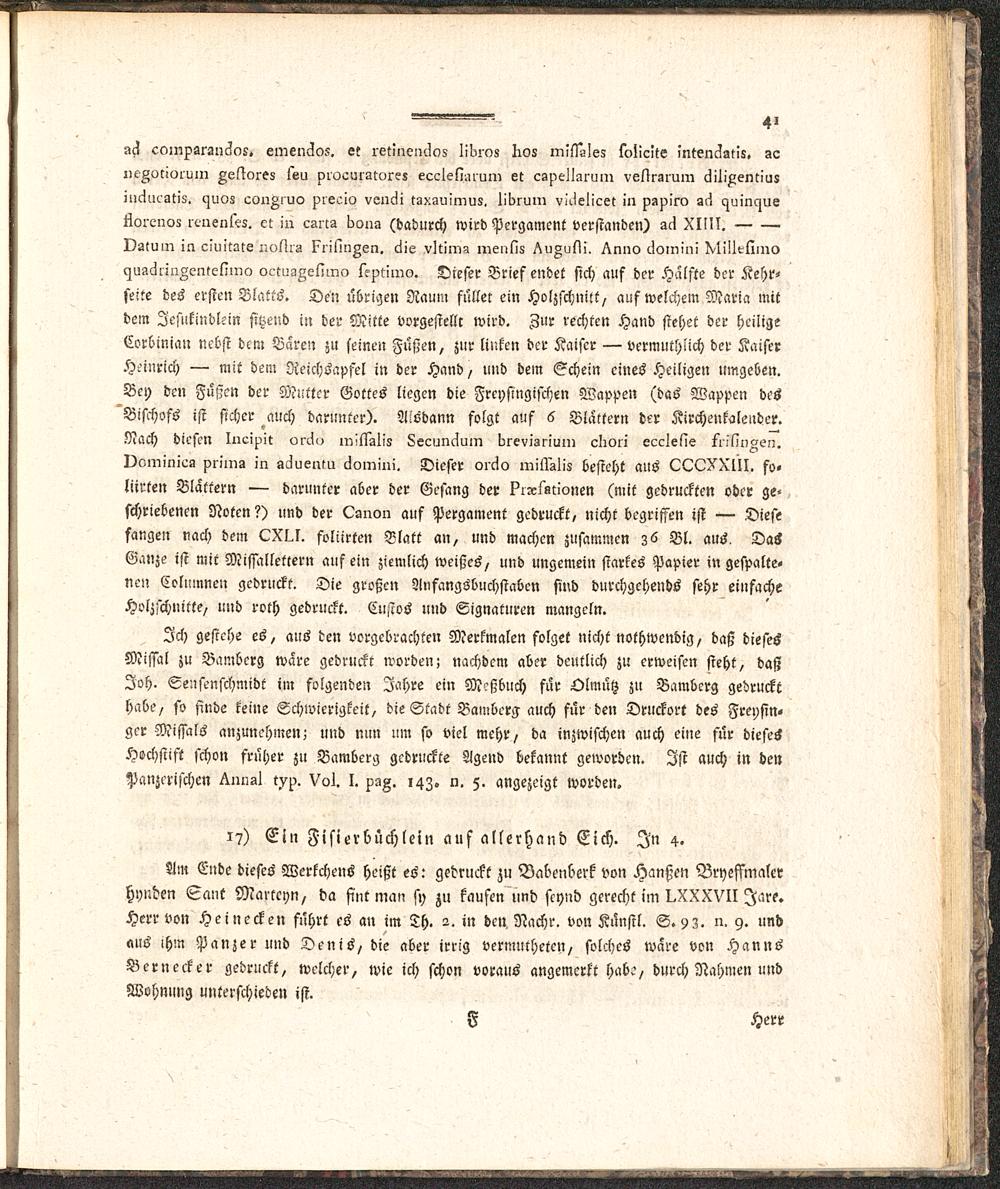 Aelteste Buchdruckergeschichte von Bamberg : wo diese Kunst neben Mainz, von allen übrigen Städten Deutschlands zuerst getrieben worden ; aus der Dunkelheit hervorgezogen und bis 1534 fortgeführt, auch mit ein Paar Abhandlungen versehen / von P. Placidus Sprenger, Benediktiner und Bibliothekar der Abtey Banz