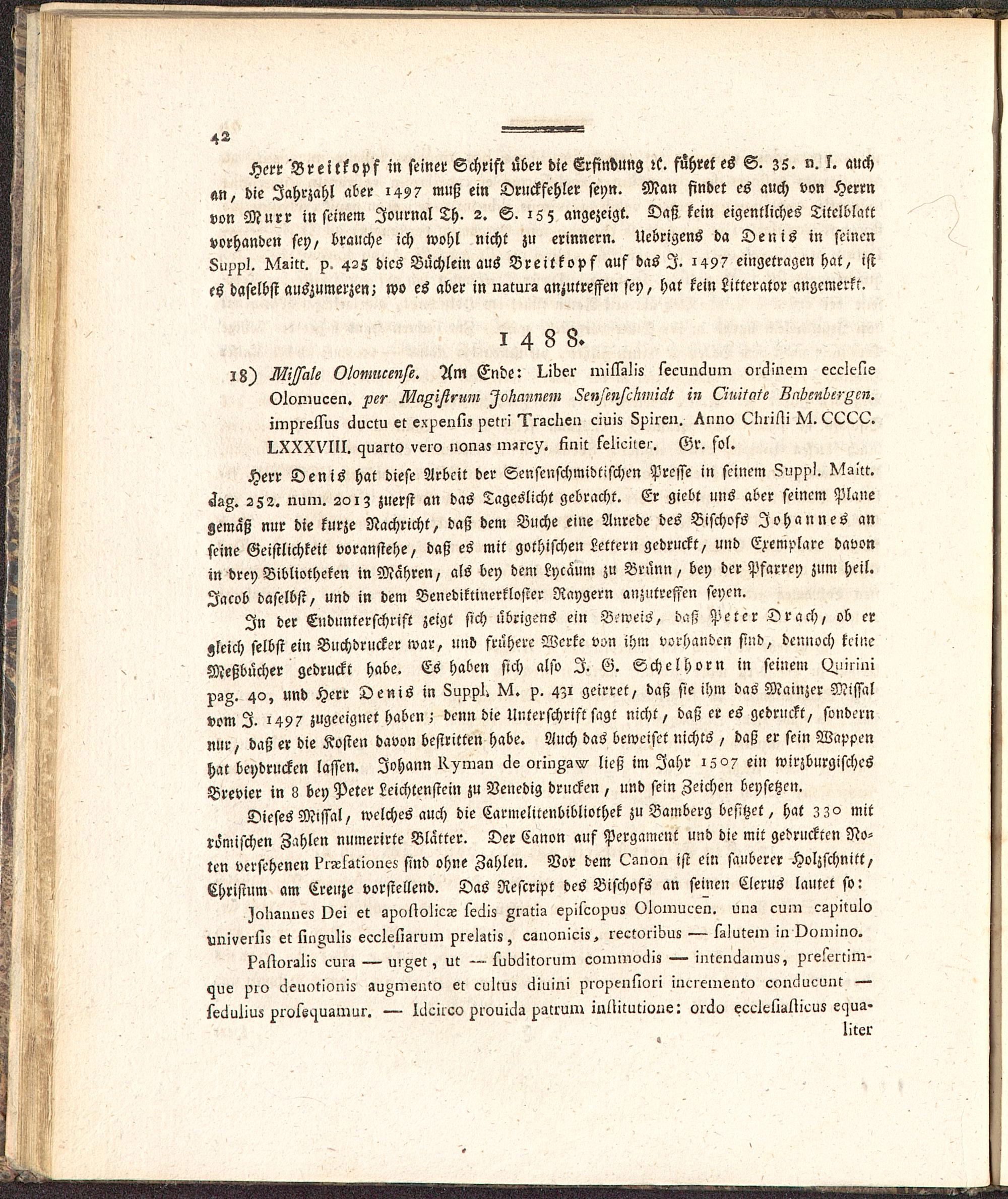 Aelteste Buchdruckergeschichte von Bamberg : wo diese Kunst neben Mainz, von allen übrigen Städten Deutschlands zuerst getrieben worden ; aus der Dunkelheit hervorgezogen und bis 1534 fortgeführt, auch mit ein Paar Abhandlungen versehen / von P. Placidus Sprenger, Benediktiner und Bibliothekar der Abtey Banz