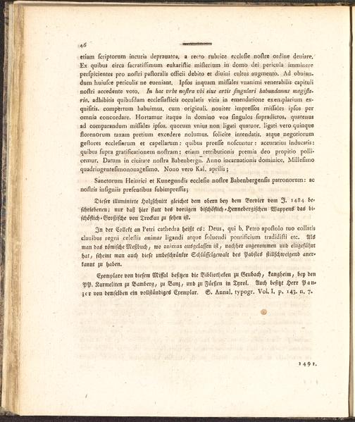 Aelteste Buchdruckergeschichte von Bamberg : wo diese Kunst neben Mainz, von allen übrigen Städten Deutschlands zuerst getrieben worden ; aus der Dunkelheit hervorgezogen und bis 1534 fortgeführt, auch mit ein Paar Abhandlungen versehen / von P. Placidus Sprenger, Benediktiner und Bibliothekar der Abtey Banz