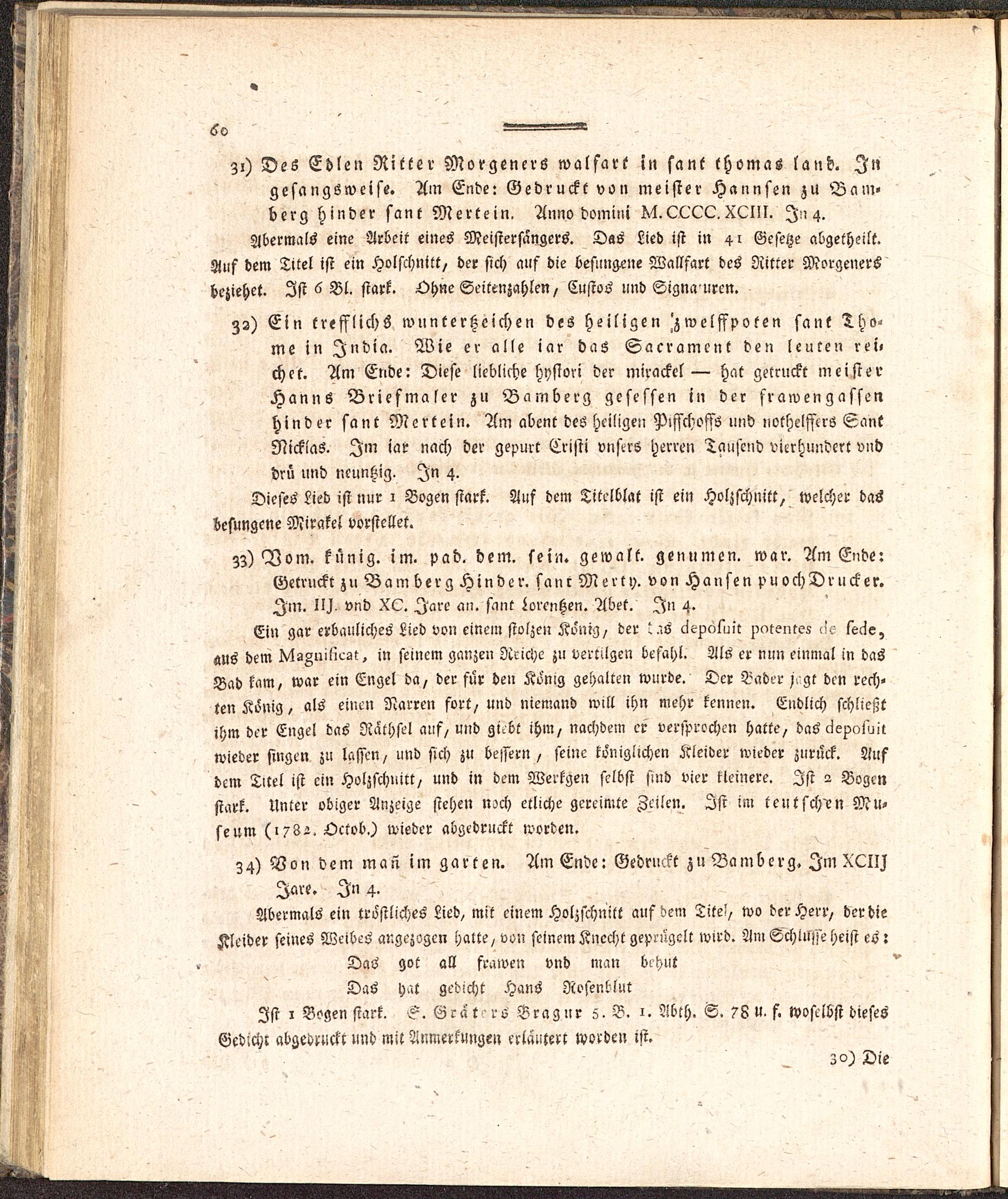 Aelteste Buchdruckergeschichte von Bamberg : wo diese Kunst neben Mainz, von allen übrigen Städten Deutschlands zuerst getrieben worden ; aus der Dunkelheit hervorgezogen und bis 1534 fortgeführt, auch mit ein Paar Abhandlungen versehen / von P. Placidus Sprenger, Benediktiner und Bibliothekar der Abtey Banz