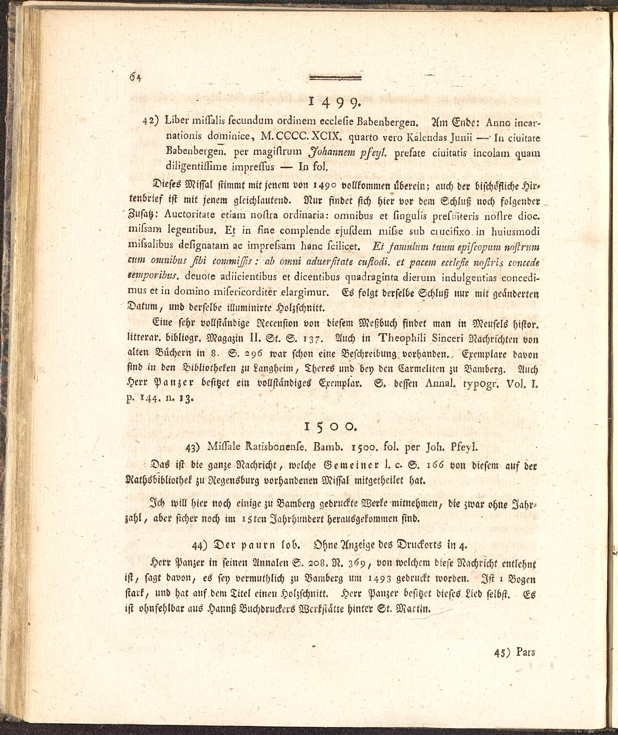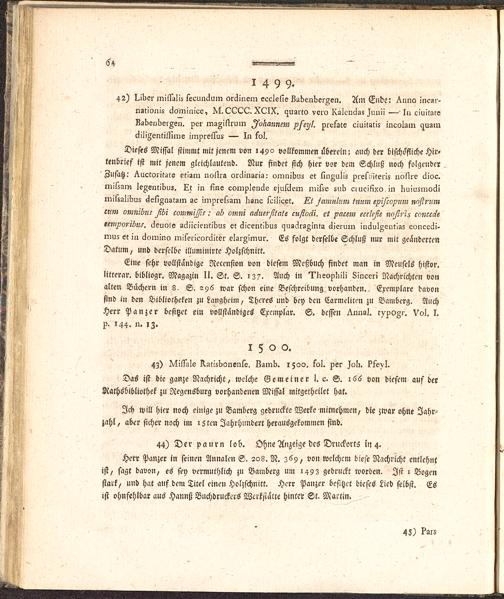 Aelteste Buchdruckergeschichte von Bamberg : wo diese Kunst neben Mainz, von allen übrigen Städten Deutschlands zuerst getrieben worden ; aus der Dunkelheit hervorgezogen und bis 1534 fortgeführt, auch mit ein Paar Abhandlungen versehen / von P. Placidus Sprenger, Benediktiner und Bibliothekar der Abtey Banz