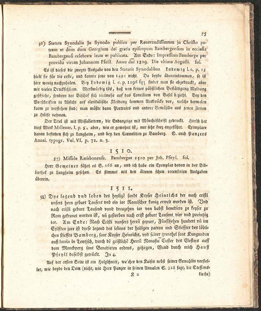 Aelteste Buchdruckergeschichte von Bamberg : wo diese Kunst neben Mainz, von allen übrigen Städten Deutschlands zuerst getrieben worden ; aus der Dunkelheit hervorgezogen und bis 1534 fortgeführt, auch mit ein Paar Abhandlungen versehen / von P. Placidus Sprenger, Benediktiner und Bibliothekar der Abtey Banz