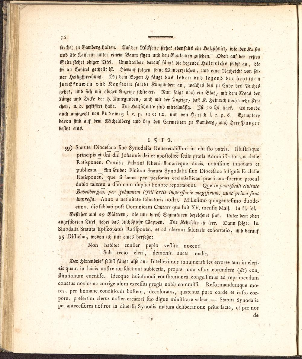 Aelteste Buchdruckergeschichte von Bamberg : wo diese Kunst neben Mainz, von allen übrigen Städten Deutschlands zuerst getrieben worden ; aus der Dunkelheit hervorgezogen und bis 1534 fortgeführt, auch mit ein Paar Abhandlungen versehen / von P. Placidus Sprenger, Benediktiner und Bibliothekar der Abtey Banz