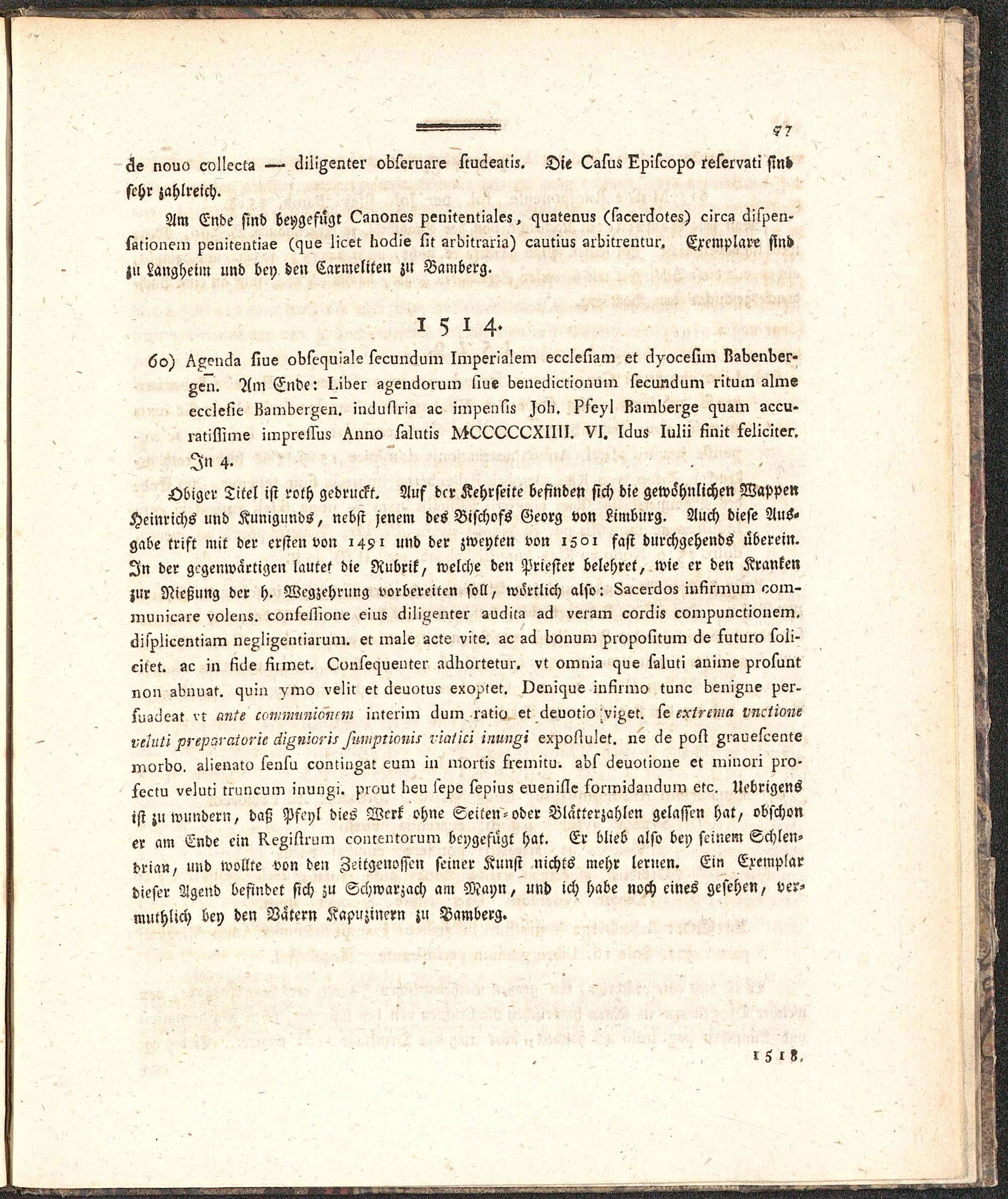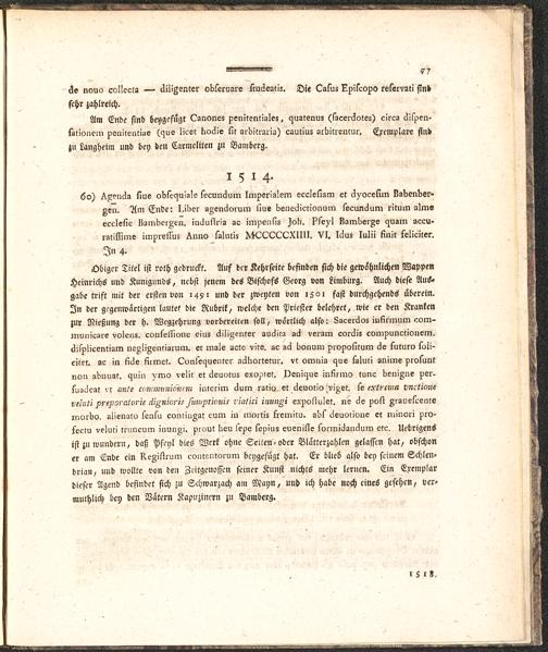 Aelteste Buchdruckergeschichte von Bamberg : wo diese Kunst neben Mainz, von allen übrigen Städten Deutschlands zuerst getrieben worden ; aus der Dunkelheit hervorgezogen und bis 1534 fortgeführt, auch mit ein Paar Abhandlungen versehen / von P. Placidus Sprenger, Benediktiner und Bibliothekar der Abtey Banz