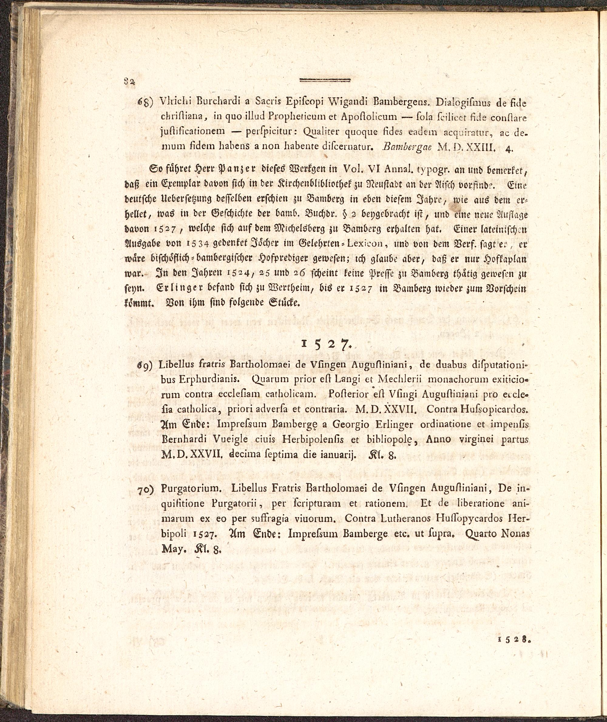 Aelteste Buchdruckergeschichte von Bamberg : wo diese Kunst neben Mainz, von allen übrigen Städten Deutschlands zuerst getrieben worden ; aus der Dunkelheit hervorgezogen und bis 1534 fortgeführt, auch mit ein Paar Abhandlungen versehen / von P. Placidus Sprenger, Benediktiner und Bibliothekar der Abtey Banz