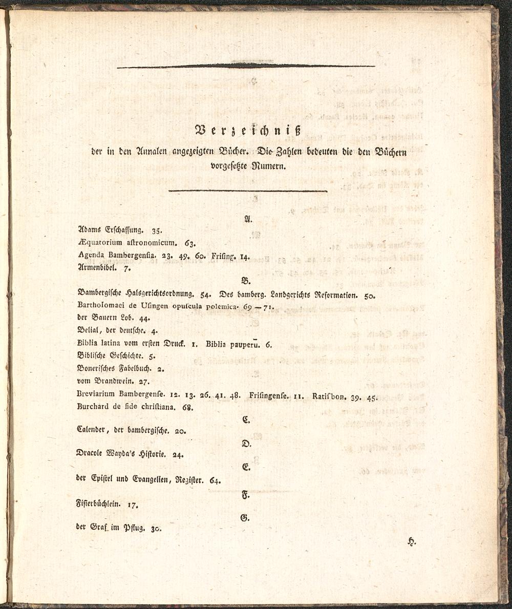Aelteste Buchdruckergeschichte von Bamberg : wo diese Kunst neben Mainz, von allen übrigen Städten Deutschlands zuerst getrieben worden ; aus der Dunkelheit hervorgezogen und bis 1534 fortgeführt, auch mit ein Paar Abhandlungen versehen / von P. Placidus Sprenger, Benediktiner und Bibliothekar der Abtey Banz