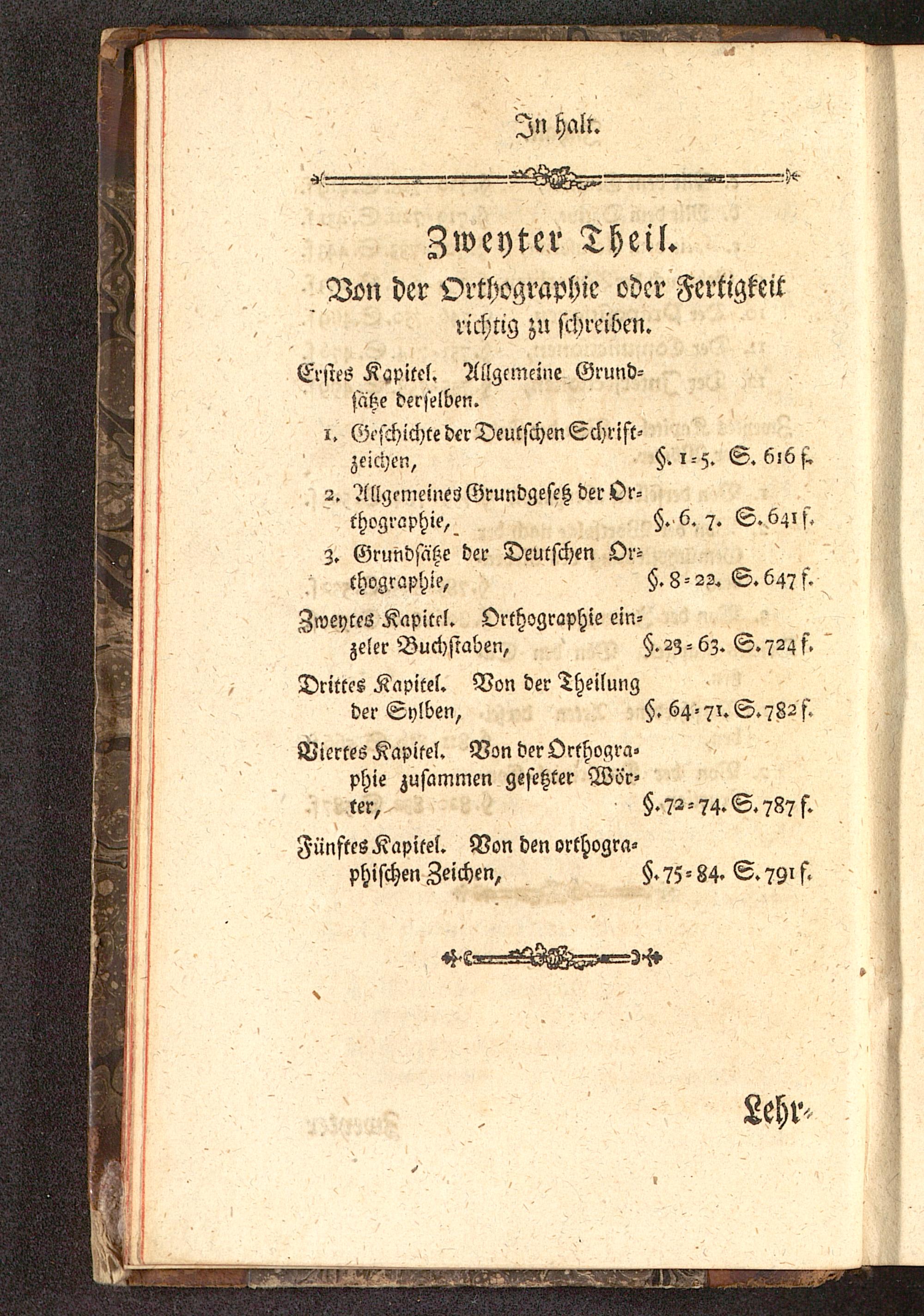Der Deutschen Sprachlehre Zweyter Theil. Von der Orthographie oder der Fertigkeit richtig zu schreiben