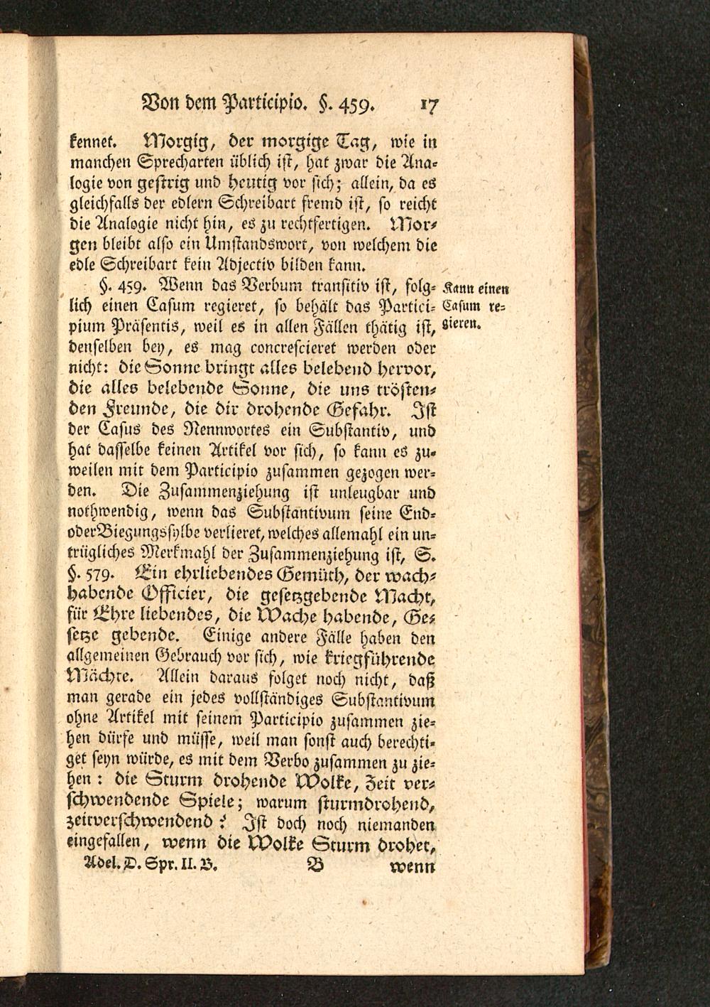 [Fortsetzung des zweyten Abschnittes, von den Wörtern als Redetheilen und ihrer Biegung]