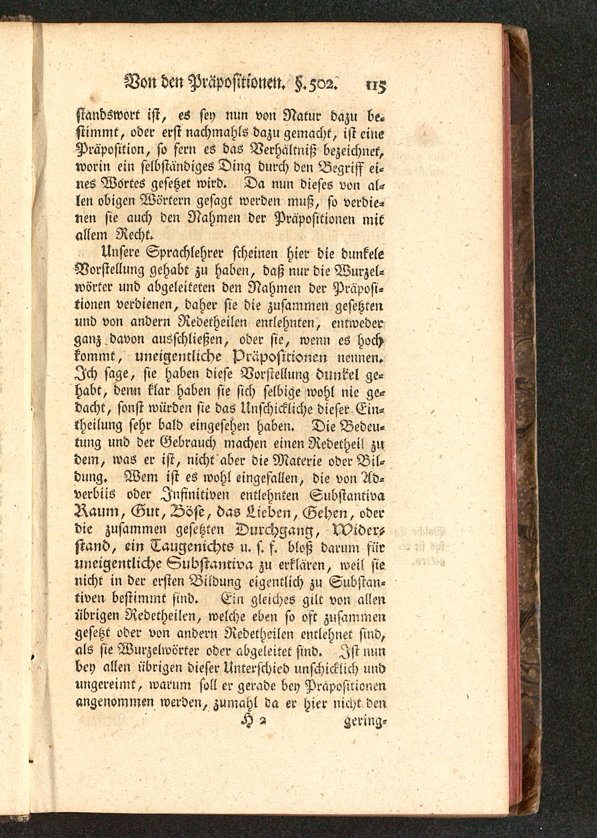 [Fortsetzung des zweyten Abschnittes, von den Wörtern als Redetheilen und ihrer Biegung]