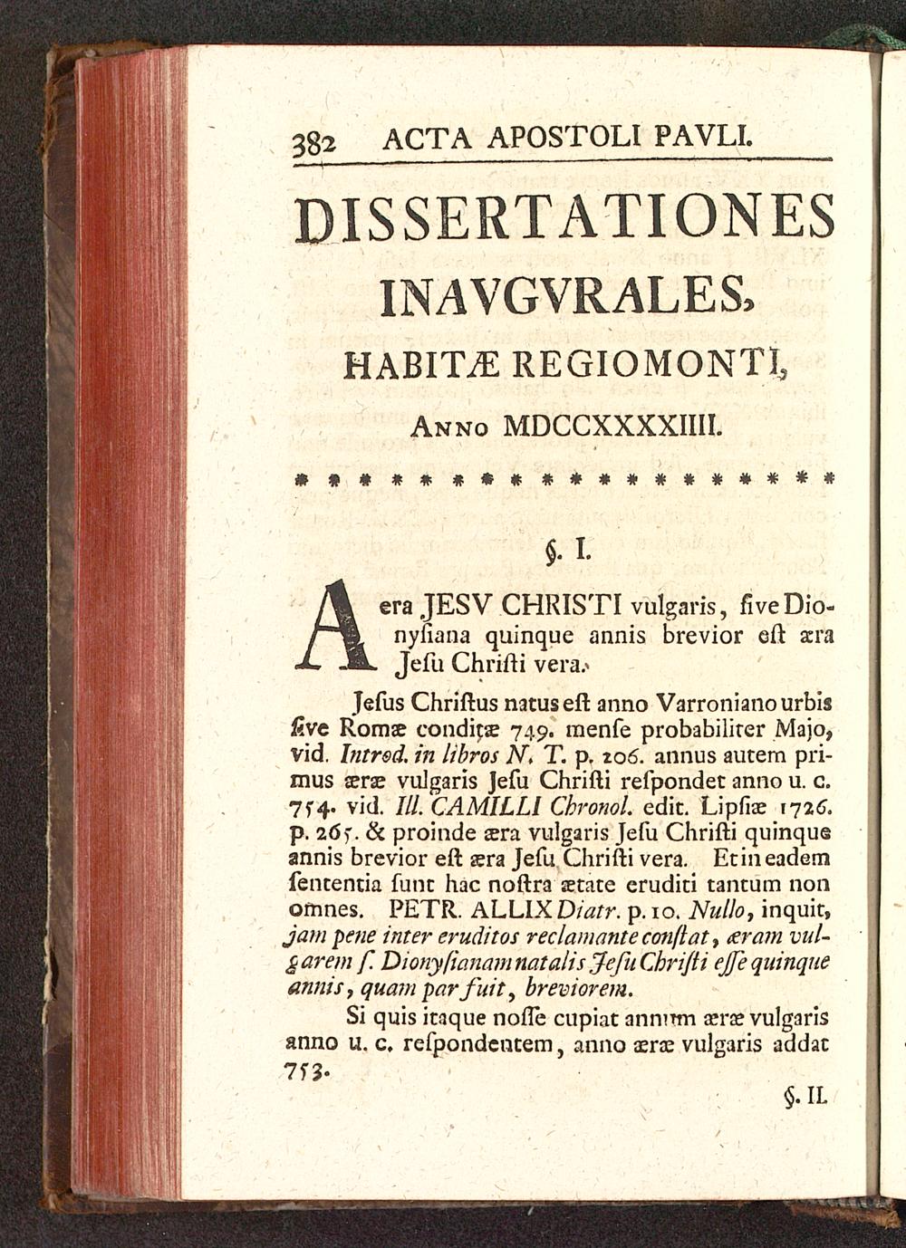 [P. 3] (1744) Appendix, quae continet Dissertationes inaugurales, passim auctas, et sistentes acta apostoli Pauli chronologice digesta