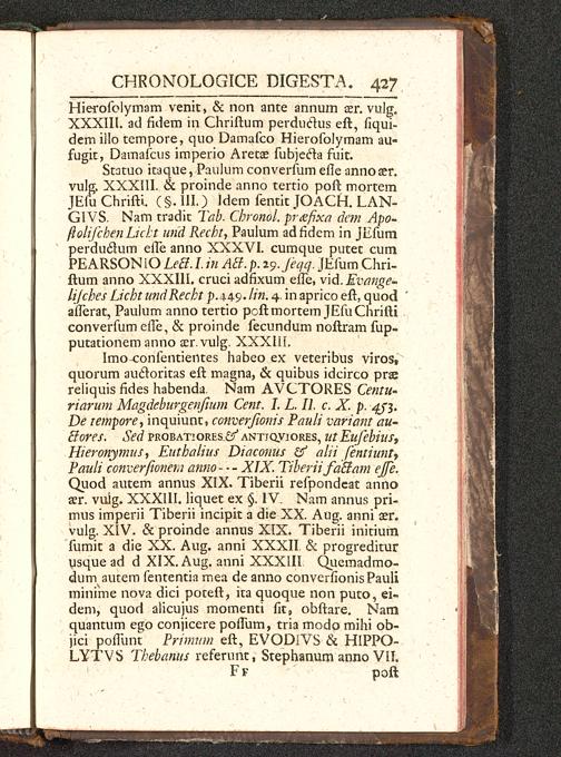 [P. 3] (1744) Appendix, quae continet Dissertationes inaugurales, passim auctas, et sistentes acta apostoli Pauli chronologice digesta
