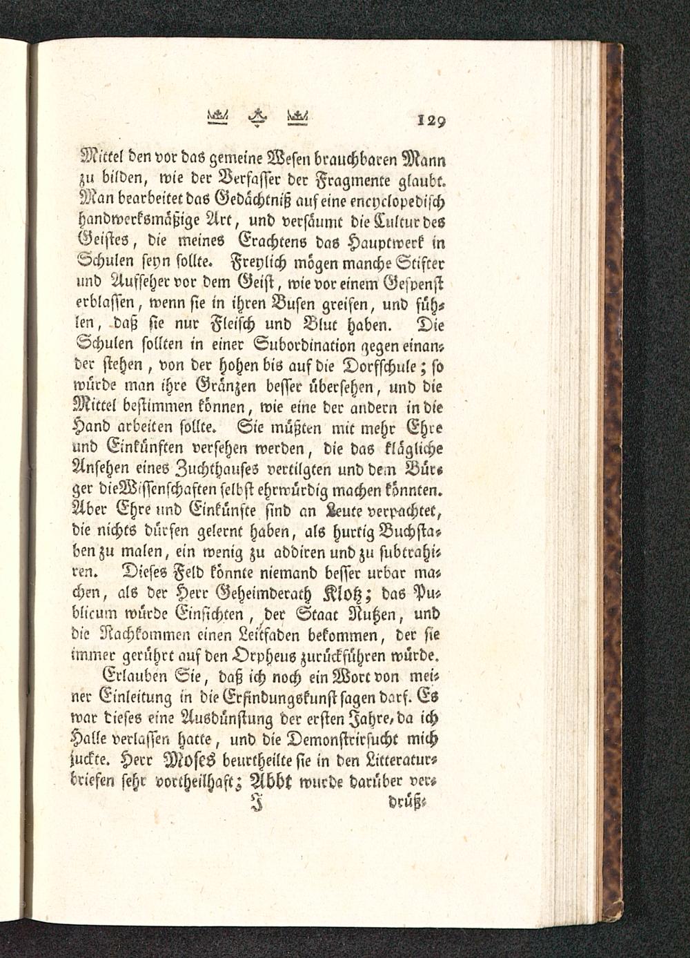 Briefe Deutscher Gelehrten an den Herrn Geheimen Rath Klotz / Herausgegeben von J. J. A. v. Hagen, Lieut. des Königl. Preuß. Reg. von Anh. Bernburg