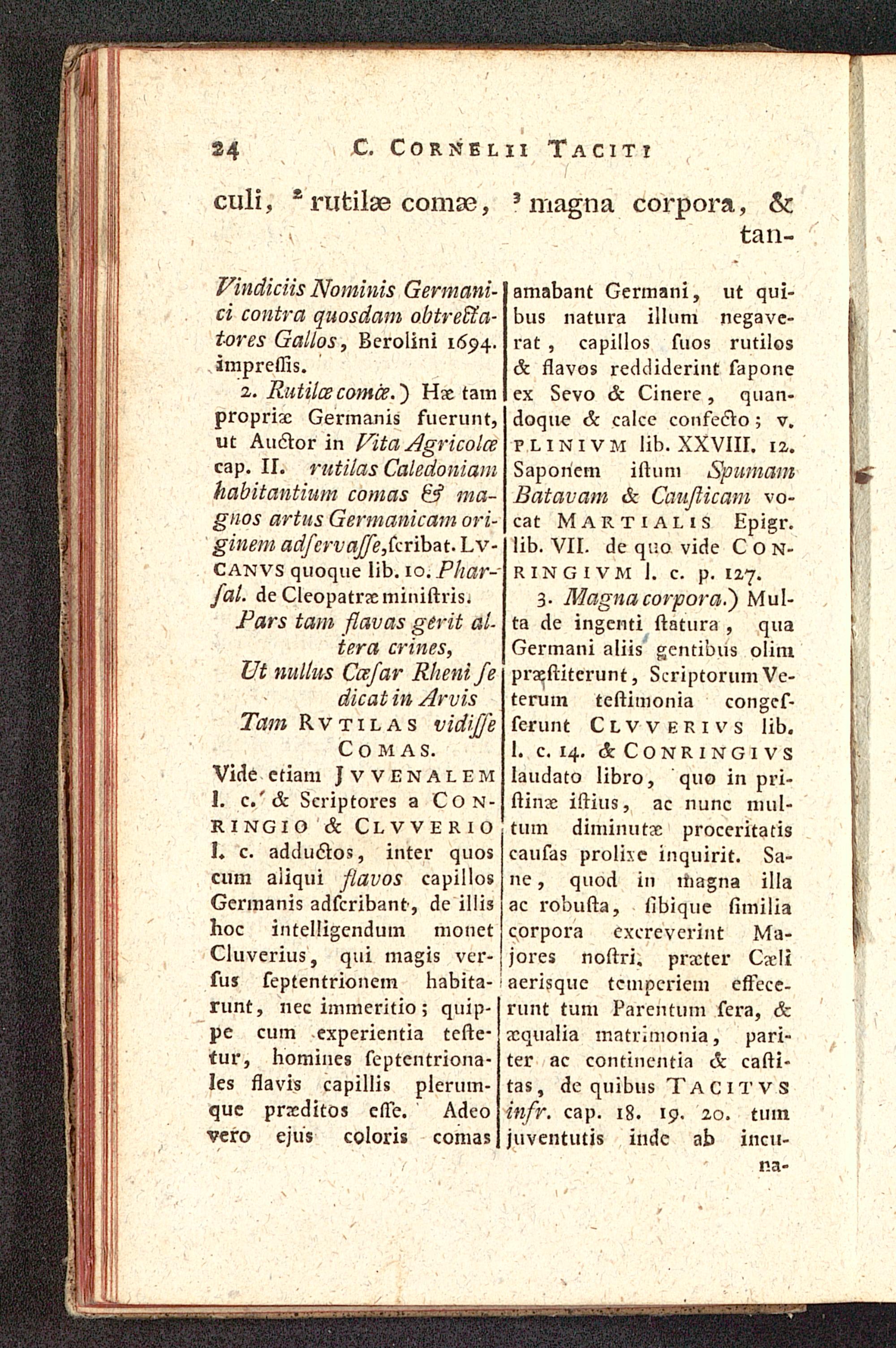 Caii. Cornelii Taciti De Sitv, Moribvs Et Popvlis Germaniae Libellvs : Cvm Perpetvo Et Pragmatico Commentario, Qvo Popvlorvm Germaniae Nomina, situm, res gestas, coitiones in societates magnas ... Exposvit / Ivst. Christoph. Dithmarvs ; Accedvnt In Appendice Notae Conringii, Lacarii, et Leibnitii, Cvm Excerptis Ex ... Iacobi Gronovii Oratione De Tempore Immigrationis Batavorvm In Insvlam Svam