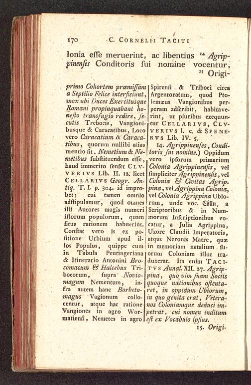 Caii. Cornelii Taciti De Sitv, Moribvs Et Popvlis Germaniae Libellvs : Cvm Perpetvo Et Pragmatico Commentario, Qvo Popvlorvm Germaniae Nomina, situm, res gestas, coitiones in societates magnas ... Exposvit / Ivst. Christoph. Dithmarvs ; Accedvnt In Appendice Notae Conringii, Lacarii, et Leibnitii, Cvm Excerptis Ex ... Iacobi Gronovii Oratione De Tempore Immigrationis Batavorvm In Insvlam Svam