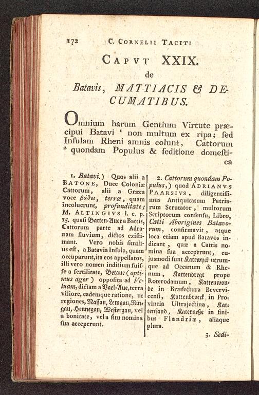 Caii. Cornelii Taciti De Sitv, Moribvs Et Popvlis Germaniae Libellvs : Cvm Perpetvo Et Pragmatico Commentario, Qvo Popvlorvm Germaniae Nomina, situm, res gestas, coitiones in societates magnas ... Exposvit / Ivst. Christoph. Dithmarvs ; Accedvnt In Appendice Notae Conringii, Lacarii, et Leibnitii, Cvm Excerptis Ex ... Iacobi Gronovii Oratione De Tempore Immigrationis Batavorvm In Insvlam Svam