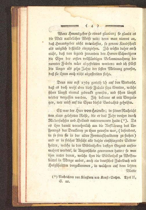 Wen» Herausgeber so etwas glauben; so glaubt eSdie Welt natürlicher Weise mit: denn man nimmt an,daß Herausgeber nicht unterlassen, so genaue Kundschaftals möglich deßfallS einzuziehen. Ich wüßte daher auchnicht, daß von irgend jemanden den Herren Schweißerndie Ehre der ersten vollständigen Bekanntmachung be-nannter Fabeln wäre abgestritten worden: und ich selbstbin langer als zehn Jahre der festen Meinung gewesen,daß sie ihnen auch nicht abzustreiten stehe»
