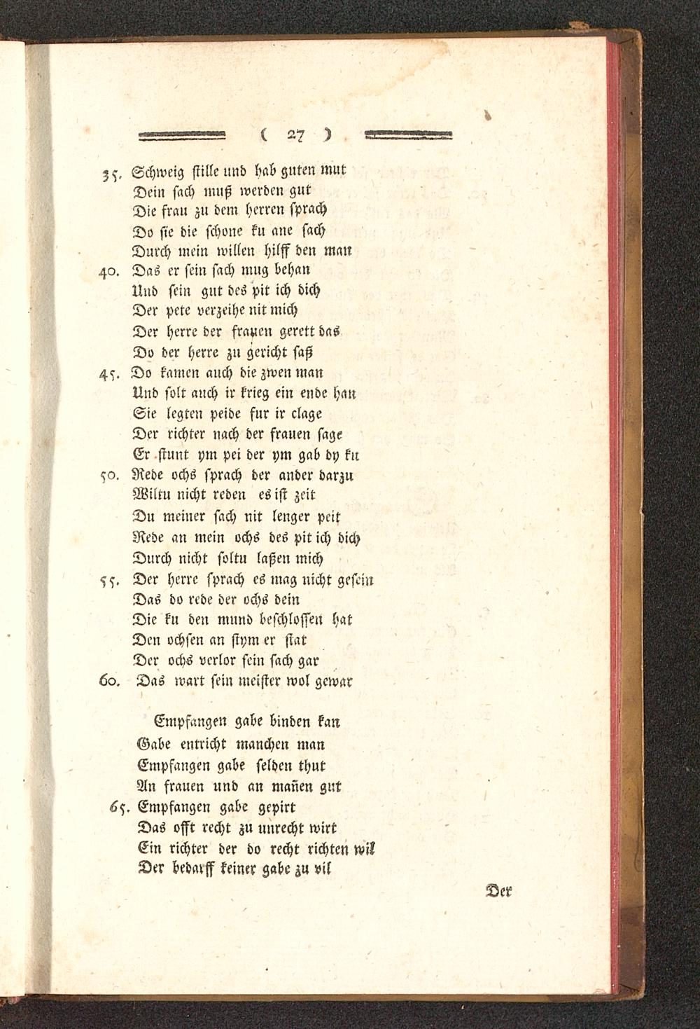 55. Der herre sprach es mag nicht geftinDas do rede der ochs deinDie ku den mund beschlossen hatDen ochsen an stym er statDer ochs verlor sein sach gar