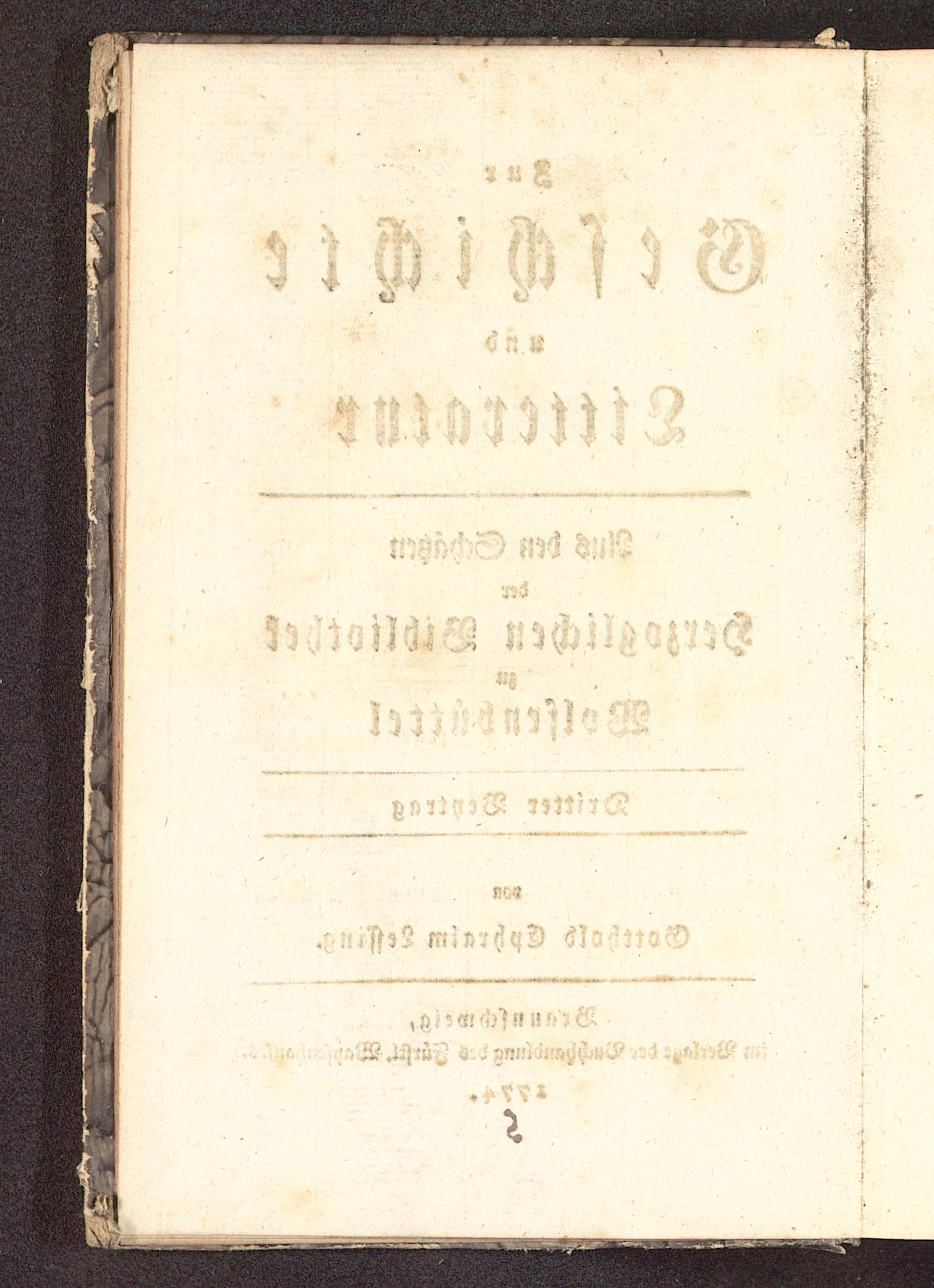 Zur Geschichte und Litteratur : aus den Schäzen der Herzoglichen Bibliothek zu Wolfenbüttel / von Gotthold Ephraim Lessing