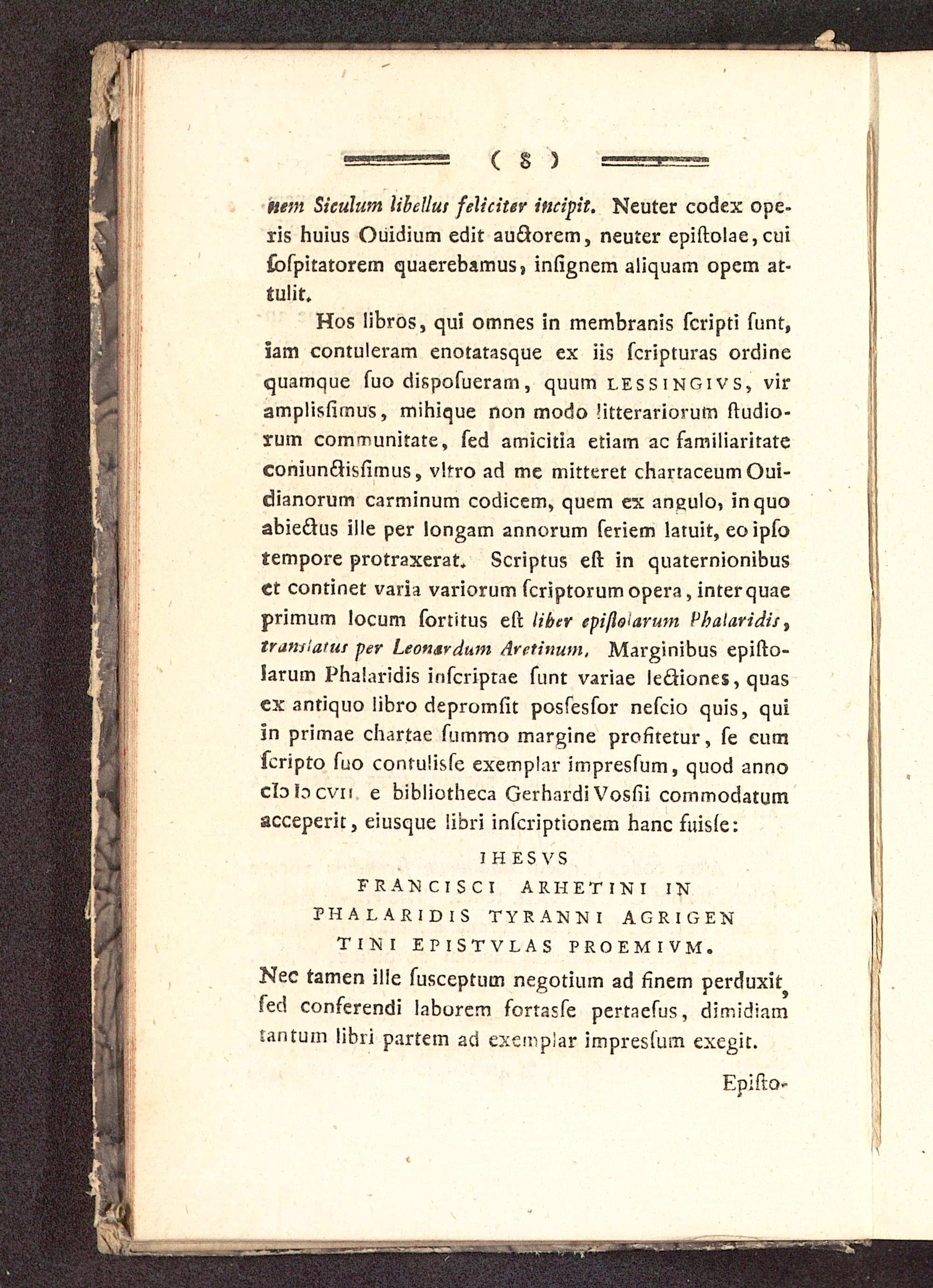 «-m 5ic«?tt?n il'Ke//«, /F?^/^s»' »'»c/^ik. Deuter co6ex ope-ris Kuius Oui6ium e6it suÄorem, neuter epiltvlae, cuiLospitztorem c^U!tereb»mus, inli^nem glic^uzm opem st-tulit.