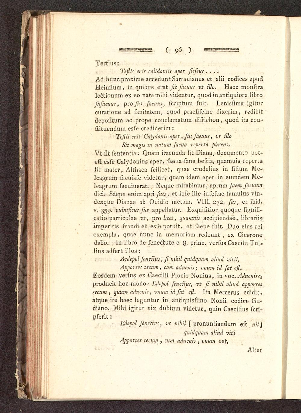 Vt üt seutenti-i: Ousm in,cunci^ sit DiÄtiÄ, äoeumento pot^ett esse Lsiväonius sper, sseua saue bellis, ^u->muis repertZlit mater» ^Itliaes foiliLöt. qukie cruilelius in ülium Äüs^lei^um s-ieuisle viäetur, qugm i6em sver in eumäem Kle-lea^rum sizeuiusr^t. r>!e(jue mii-Atiimur, Qprum /^mciici. 8aeps snirn npriet ipie ills i^ssitus tsrnuInZ vin-äexizus Dianas ab Ouiäio mst^in. VIII. 272. et idiä.v. ZM. ^.',/?.-7^c?^//^ spneil^tur. L.xczuilitivr cznoqus Ii^nili-cstio varticuu;e v^, pro //ce?, ^?^a?«?<?> scLir/ieniise, librarüsirnosritis 5rau6i et este potuit, et lueps fuit. Duo eins reiexsmpl^, czllge nnnc in rnemoriarn redsunt > ex Licerons6s.do. In libro äs seneötute c, L> ine. versus Lüeciln Ani-lins aäsert illos: