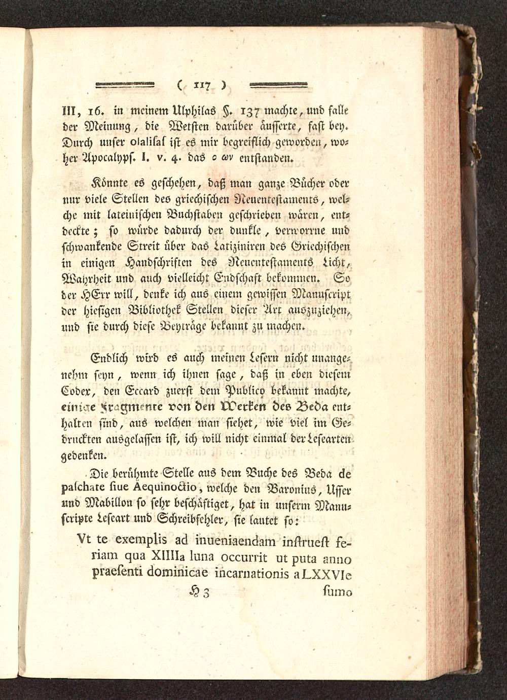 Könnte es geschehen, daß man ganze Bücher odermir viele Stellen des griechischen Neuenlestamencs, wel-che mit lateinischen Buchstaben geschrieben waren, ent-deckte ; so würde dadurch der dunkle, vcnrorrne undschwankende Streit über das Larizinircn des Griechischenin einigen Handschristen des Neucntestamenrs Licht,,Wayrhcit und auch vielleicht Endschaft bekommen. Soder HErr will, denke ich aus einem gewissen Manuscriptder hiesigen Bibliothek Stellen dieser Arr auozuzichen,und sie durch diese Beytrage bekannt zu machen.