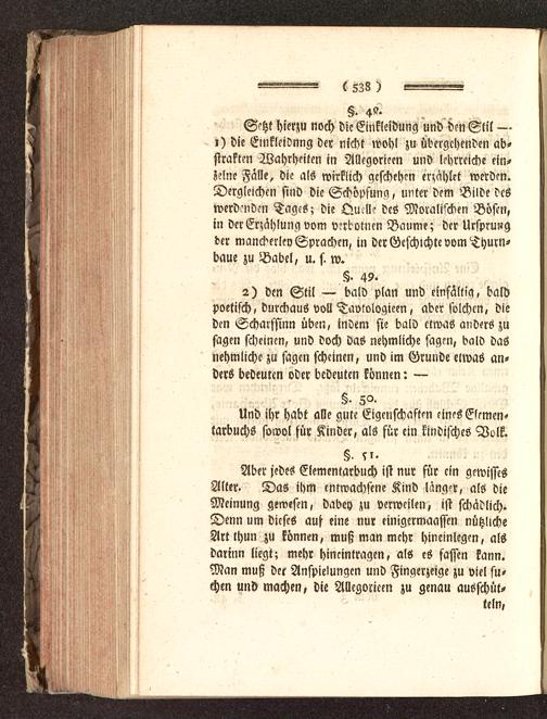 Aber jedes Eiementarbuch ist nur für ein gewissesAlter. Das ihm entwachsene Kind läng?r, als dieMeinung gewesen, dabey zu verweilen, ist schädlich.Denn um dieses auf eine nur einigermaasscn nützlicheArt thun zu können, muß man mehr hineinlegen, alsdarinn liegt; mehr hineintragen, als es fassen kann.Man muß der Anspielungen und Fingerzeige zu viel su-chen und machen, die Allegorieen zu genau ausschüt-teln,