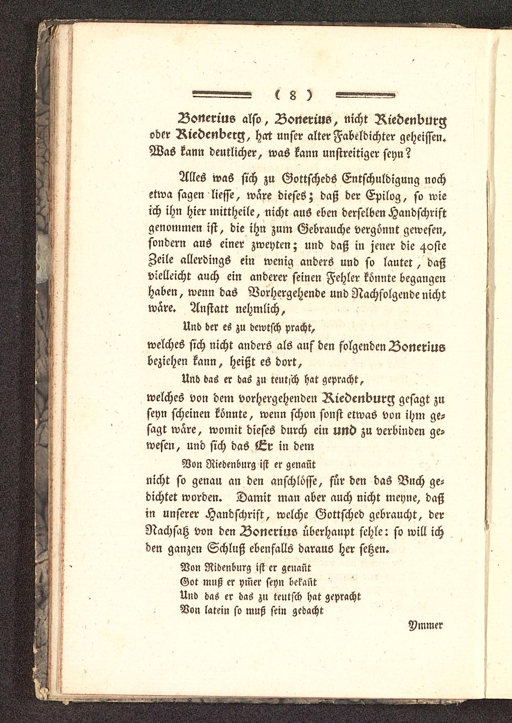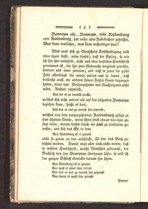 Bonerius also, Bonerius, nicht Riedenburg oder Riedenberg, hat unser alter Fabeldichter geheissen«Was kann deutlicher, was kann unstreitiger seyn?