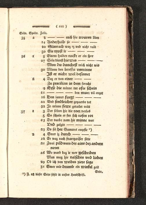 22 Vnd sendleicher gepaerde tatZ2 Zr minne fervr getailet mittZs r 3 Der selten hie die roer verlosZ So schain er für sich rojen ror>z z Der varbe nam hie minne war