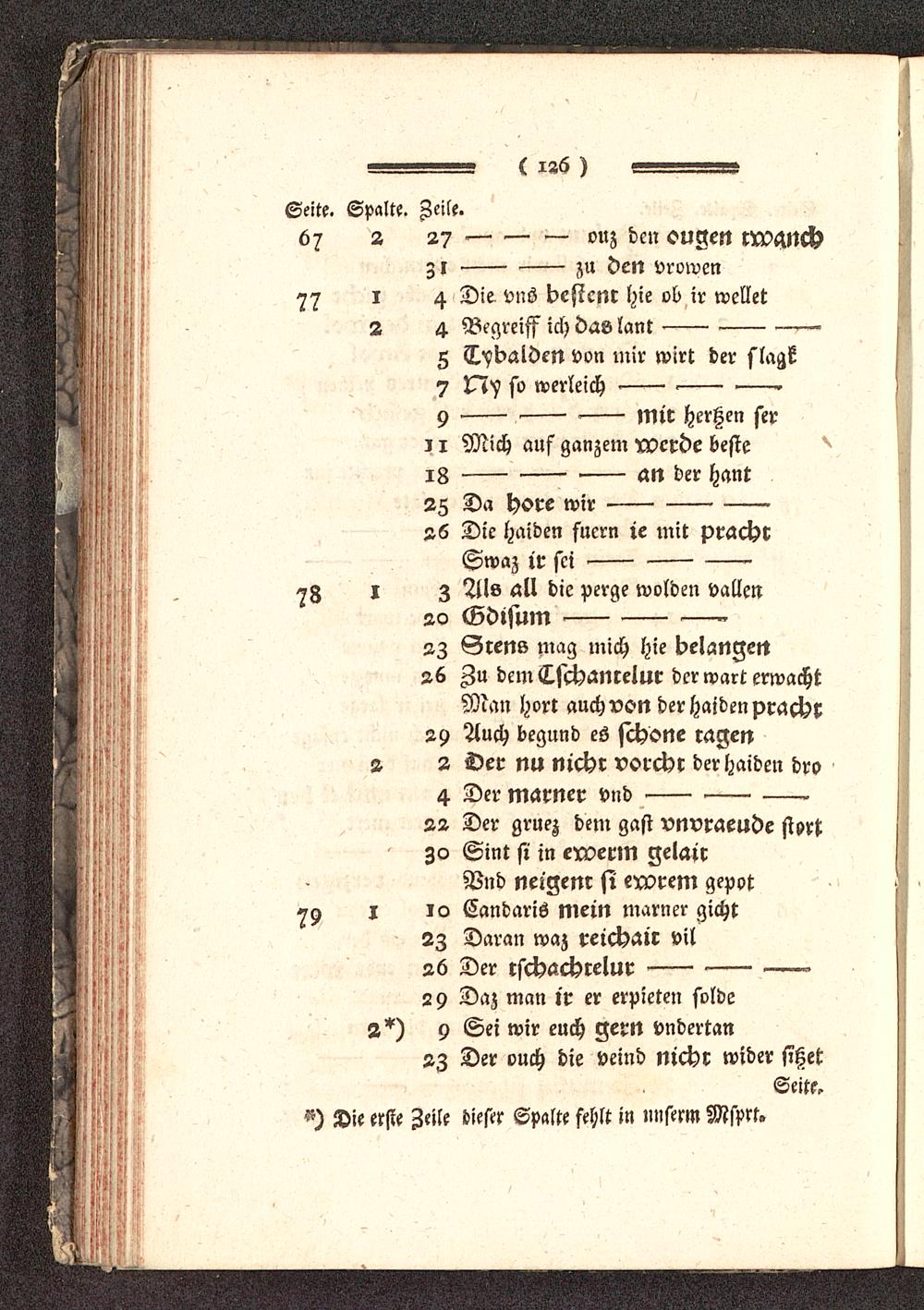 ^) Die erste Zeile dieser Spalte fehlt in unserm Msprt.