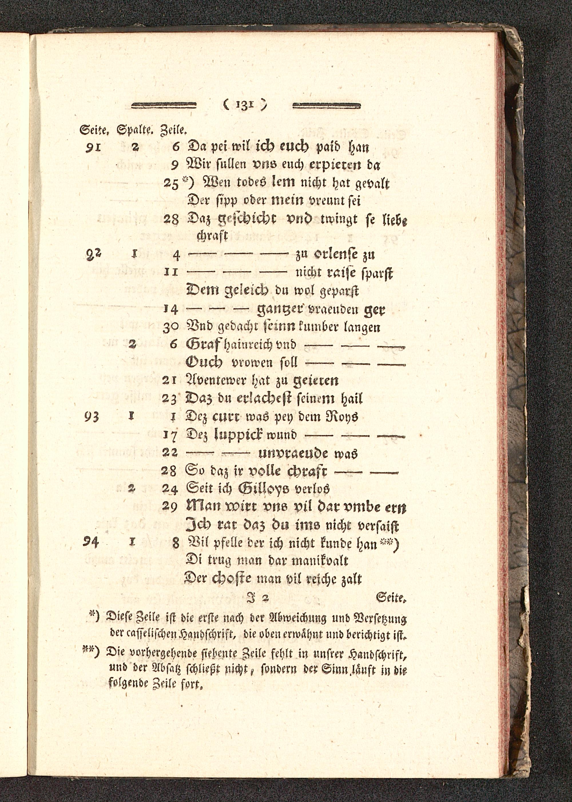 Diese Zeile ist die erste nach der Abweichung und Versetzungder casselischen Handschrift, die oben erwähnt und berichtigt ist.
