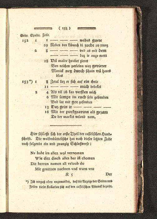 Hier schließt sich der erste Theil der cajselischen Hand-schrift. Die wolfenbültclische hal nach dieser letzten Icile»och folgende ein und zwanzig Schlußverse: