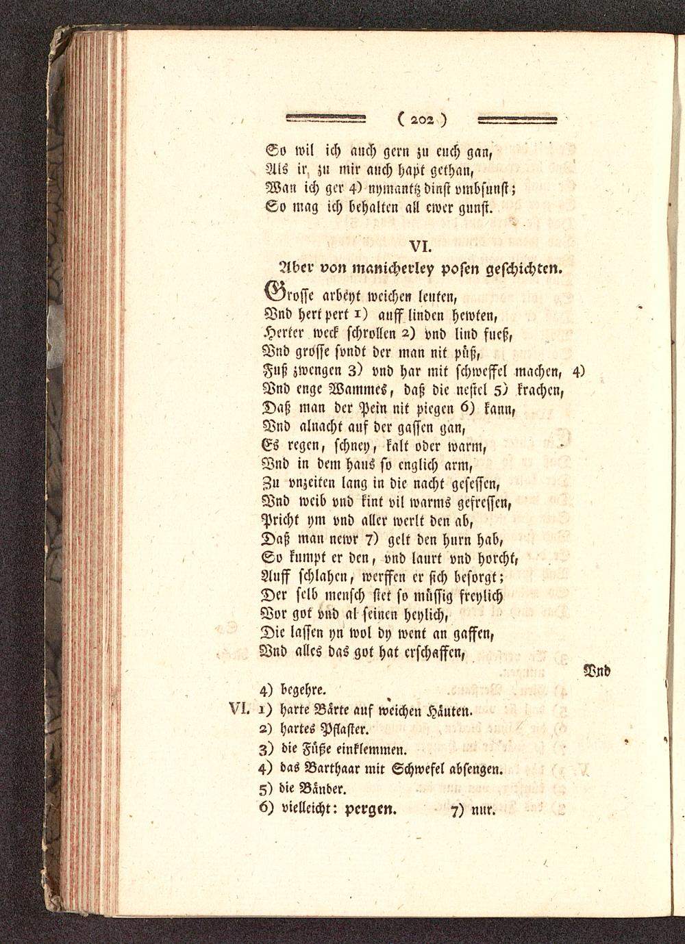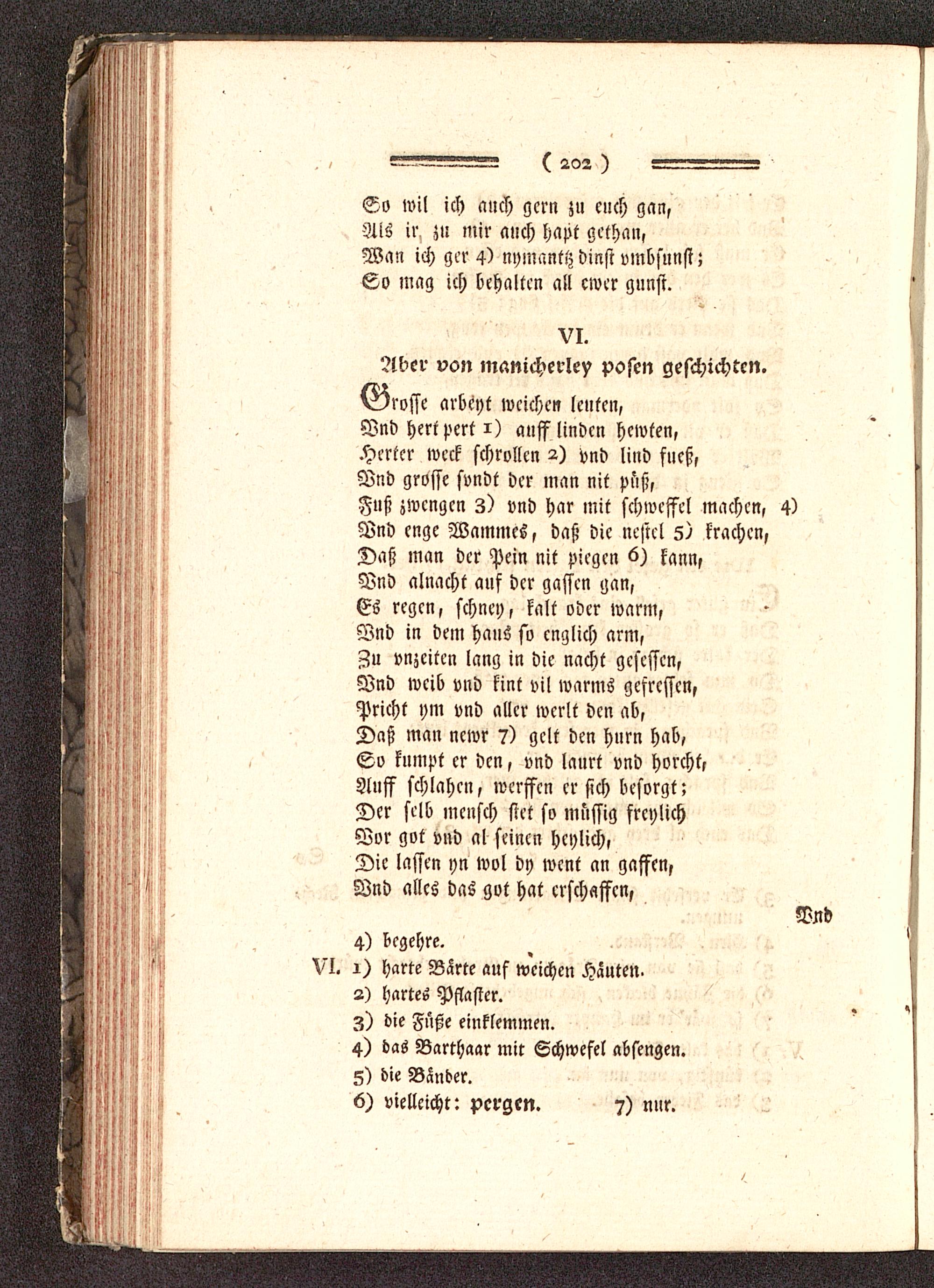 4) begehre.VI. 1) harte Bärte auf weichen Häuten.2) hartes Pflaster,z) die Füße einklemmen.