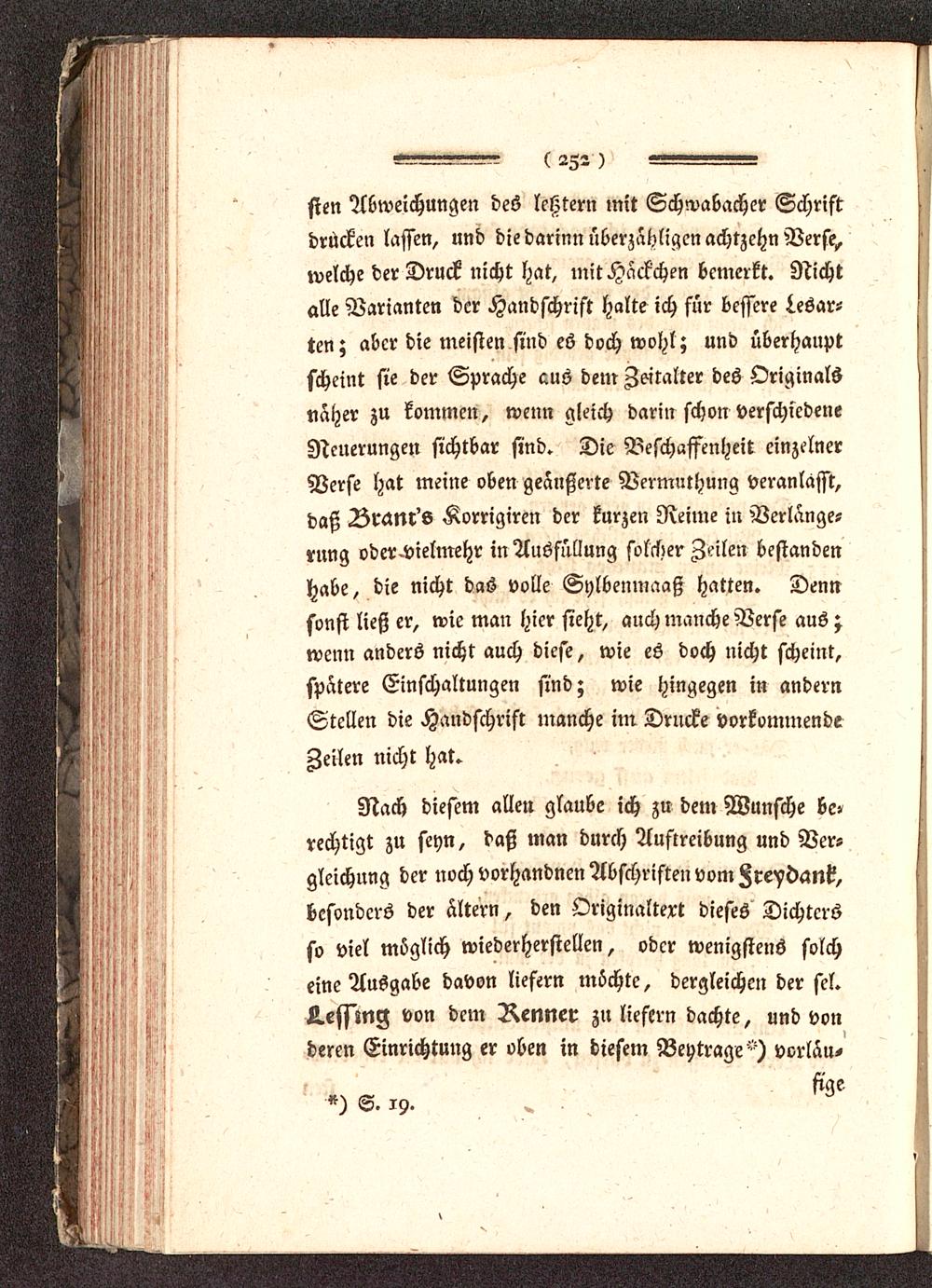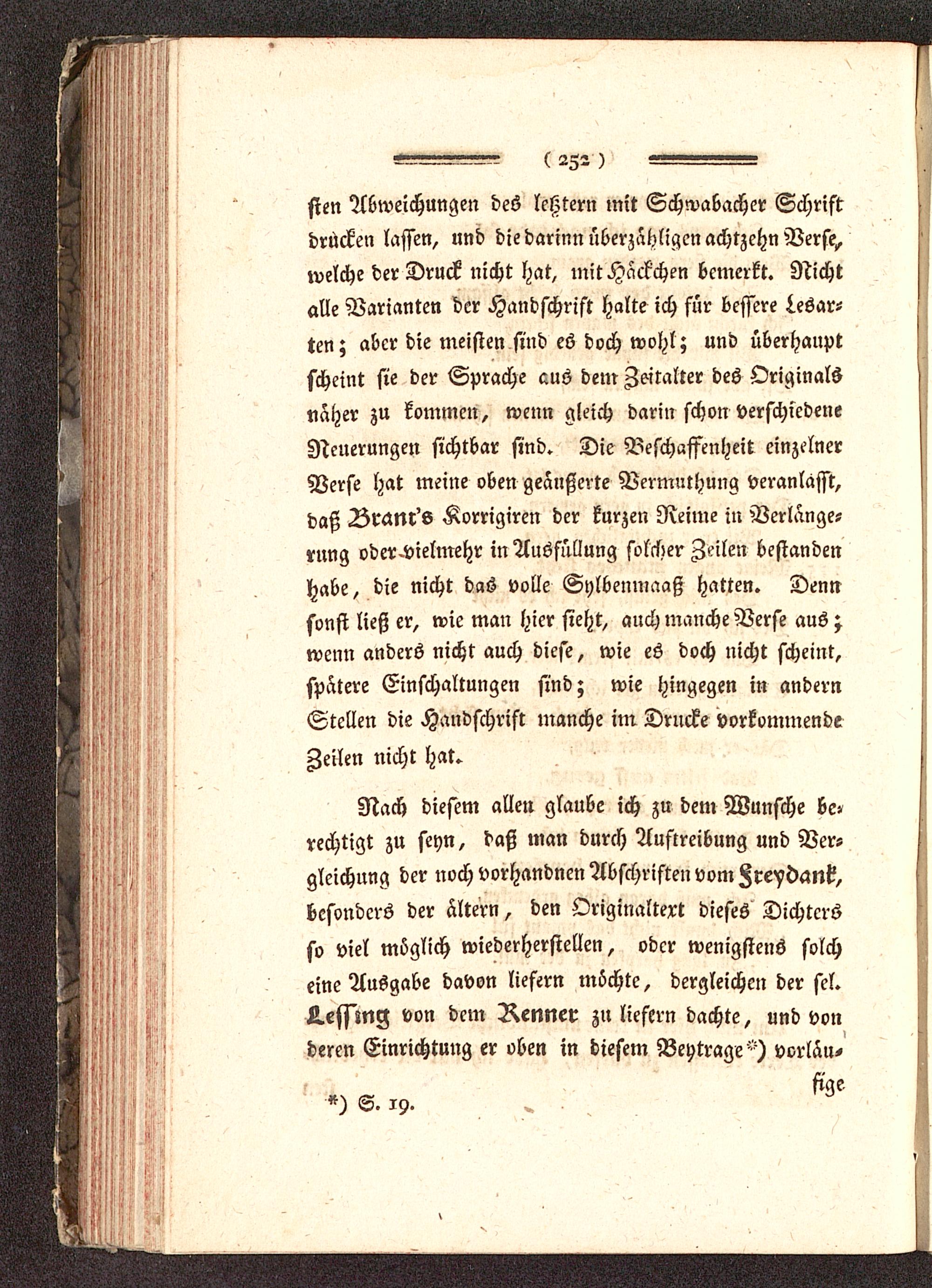 Nach diesem allen glaube ich zu dem Wunsche be-rechtigt zu seyn, daß man durch Austreibung und Ver-gleichung der noch vorhandncn Abschriften vom Zreydant,besonders der ältern, den Originaltext dieses Dichtersso viel möglich wiederherstellen, oder wenigstens solcheine Ausgabe davon liefern möchte, dergleichen der sel.Lesimg von dem Renner zu liefern dachte, und vonderen Einrichtung er oben in diesem Beytrage^) vorlau-