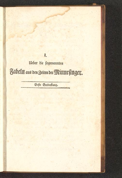 I. Ueber die sogenannten Fabeln aus den Zeiten der Minnesinger