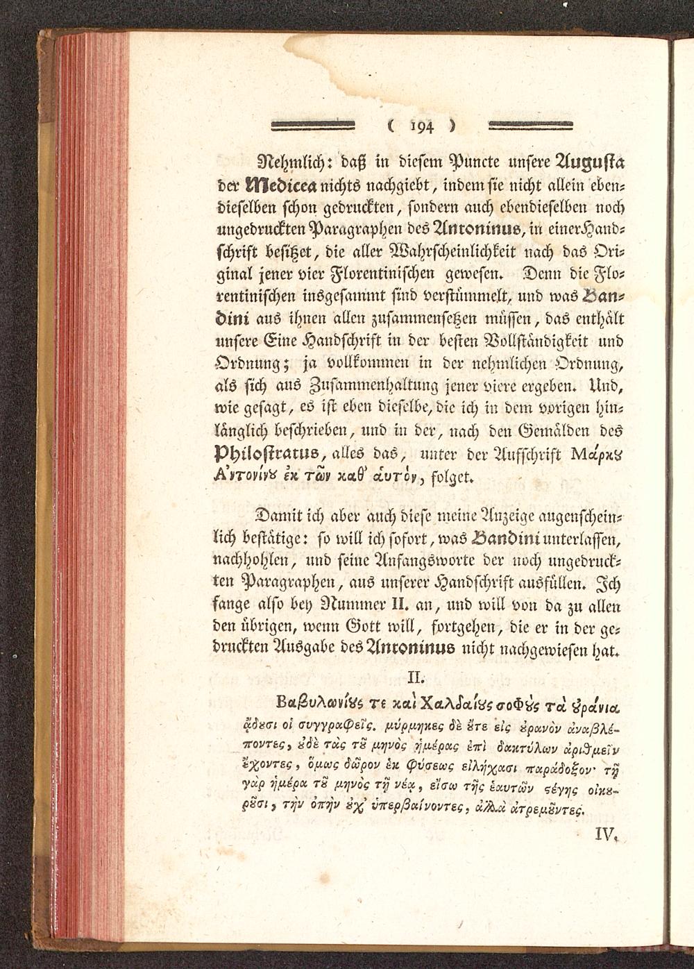 VI. Vermeinte ANEKDOTA des Antoninus in der herzoglichen Bibliothek zu Florenz