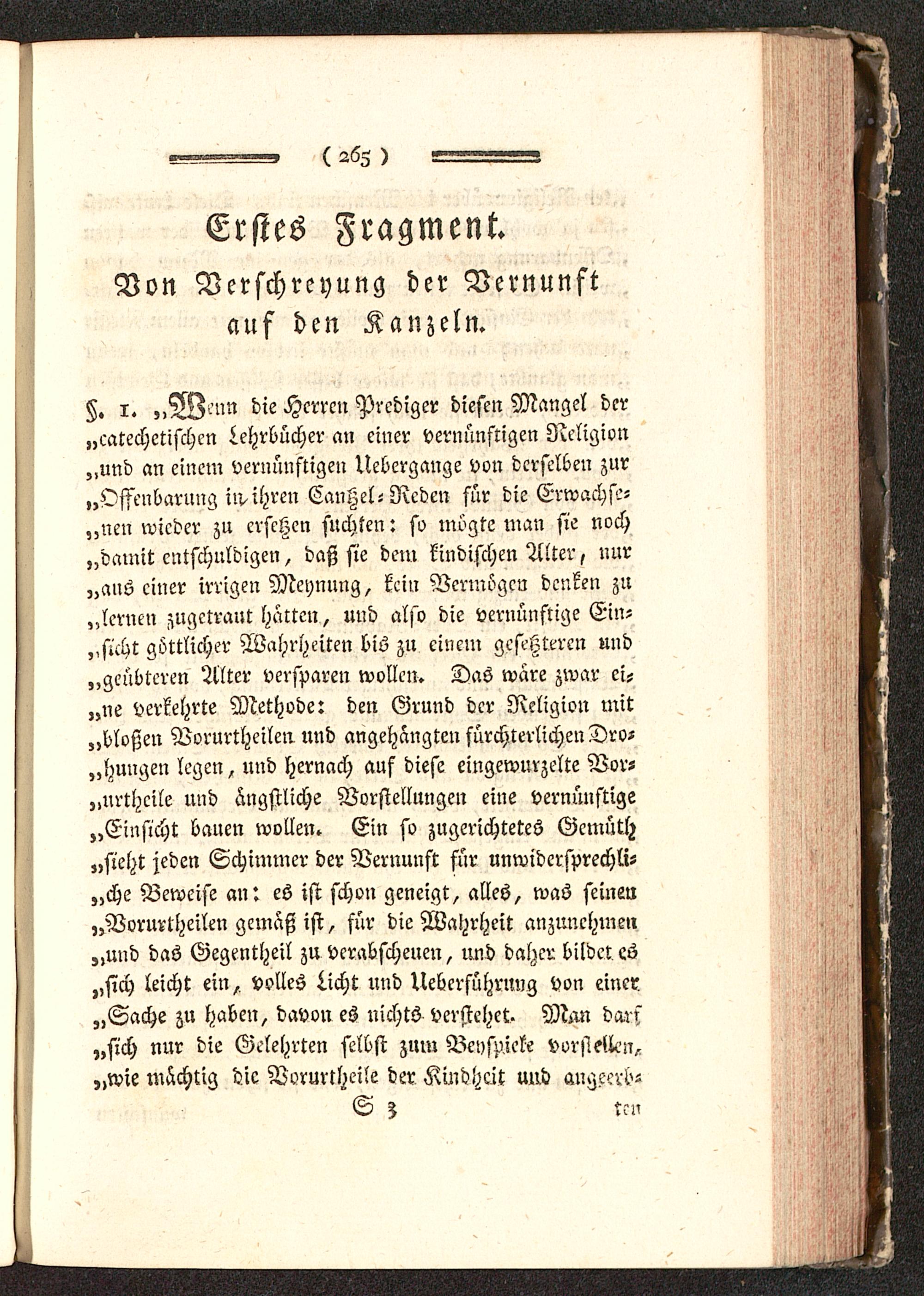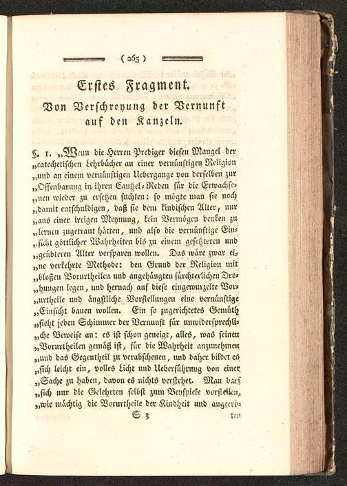Erstes Fragment. Von Verschreyung der Vernunft auf den Kanzeln