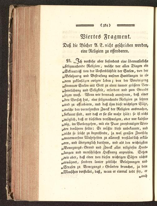 Viertes Fragment. Daß die Bücher. A.D. nicht geschrieben worden, eine Religion zu offenbaren